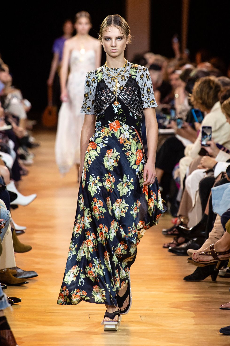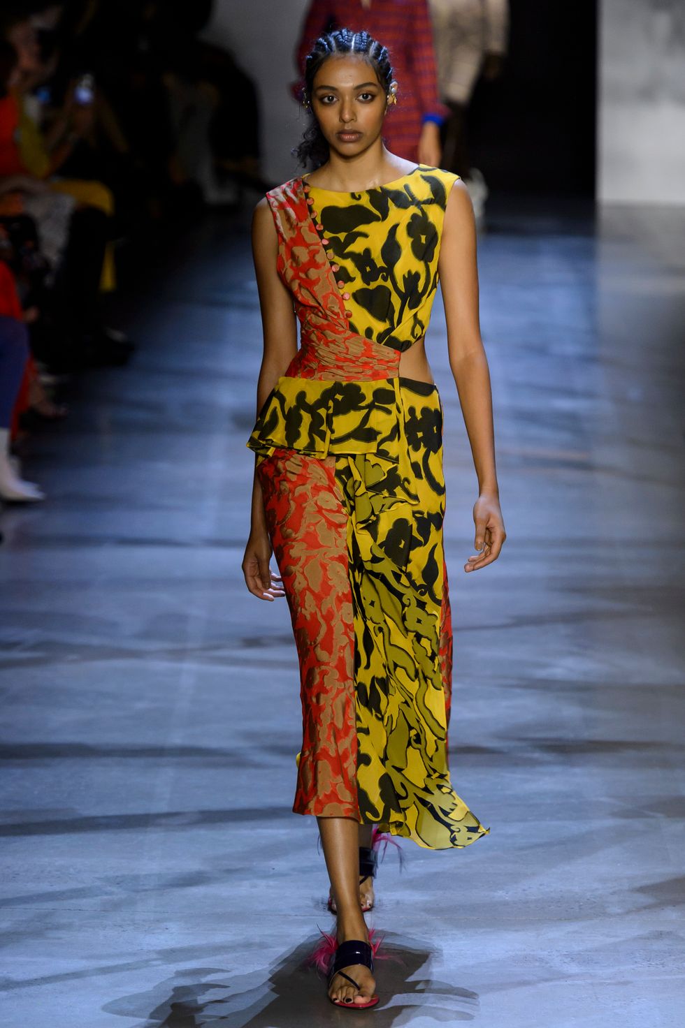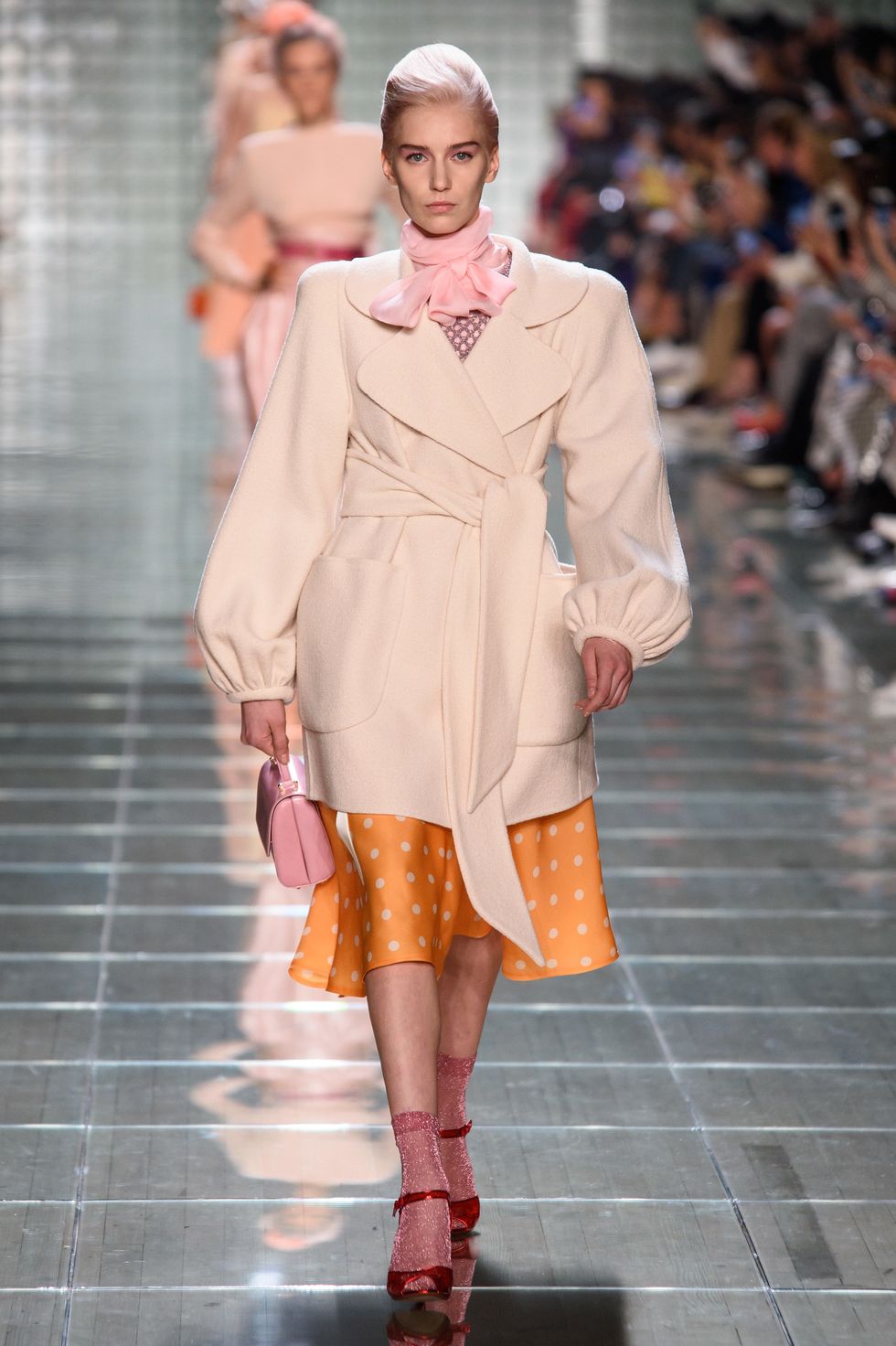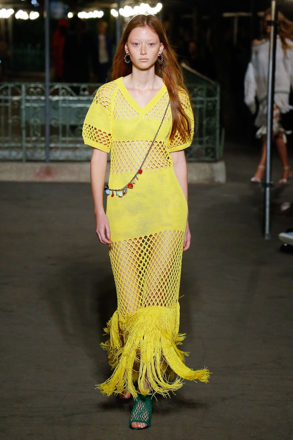 The spring 2019 season is full of bold statements. Sexy looks from net dresses and body-skimming bike shorts to the illustrious little black dress balance out quirkier motifs and details like tie dye patterns, faces as prints, and acid wash denim. Burnt orange and ombré gradations make for fresh additions on classic silhouettes. For the glamour puss, there are ostrich feathers, billowy sleeves, and headscarves abound. More utility minded style mavens can look forward to paratrooper ensembles, ski goggle-esque shades, and giant bags for ample storage. See more of our favorite spring 2019 trends, below.
