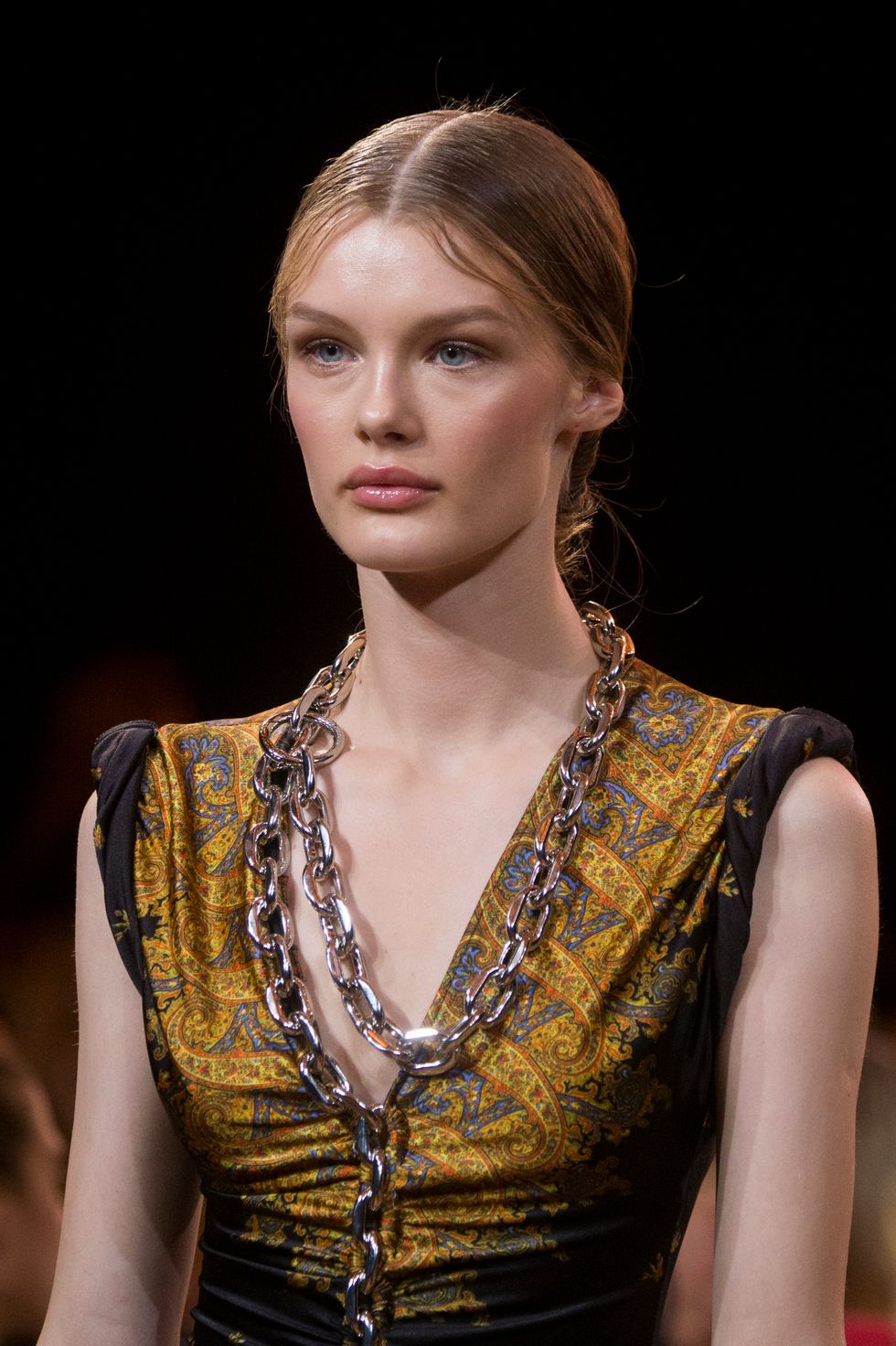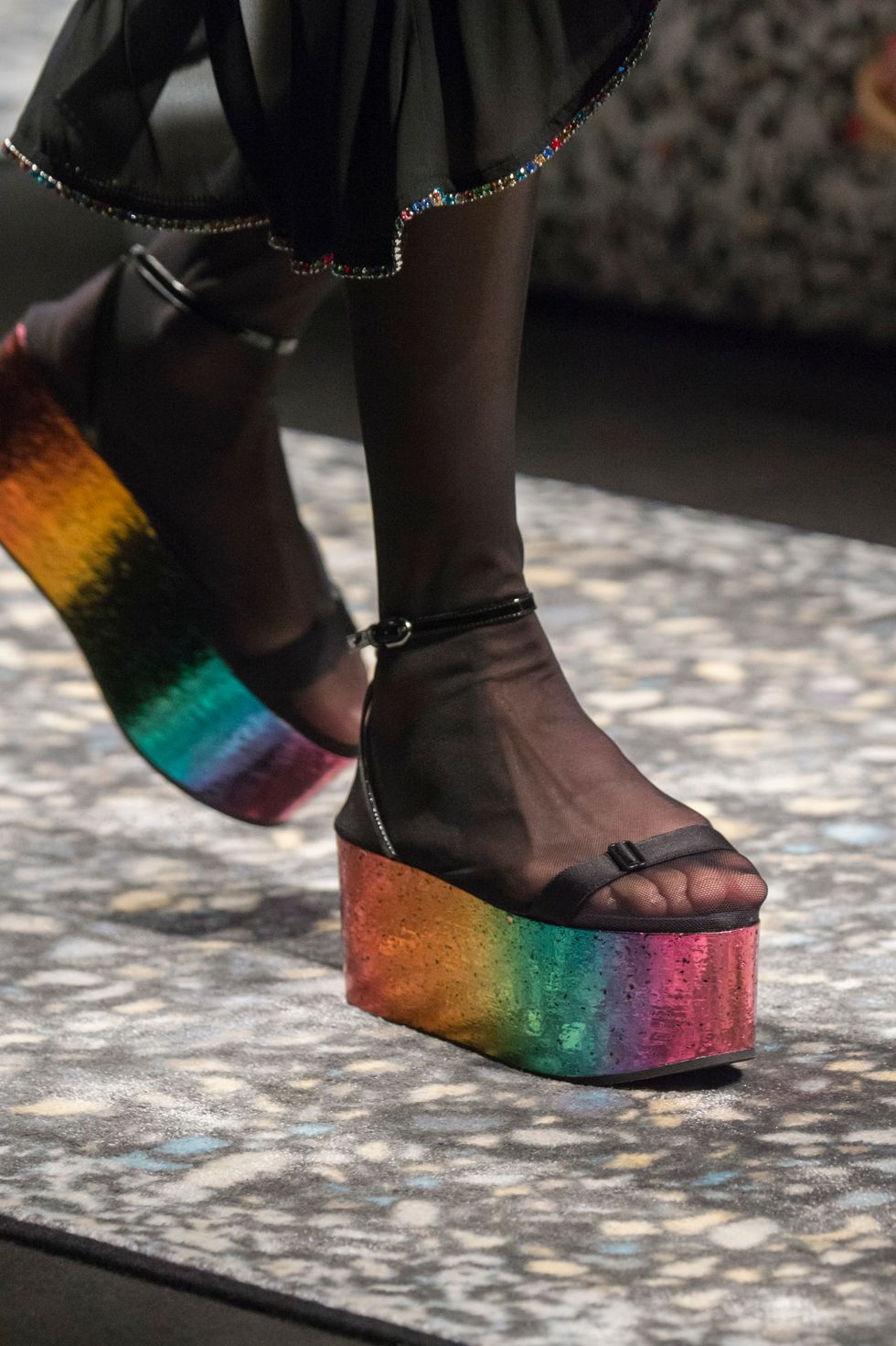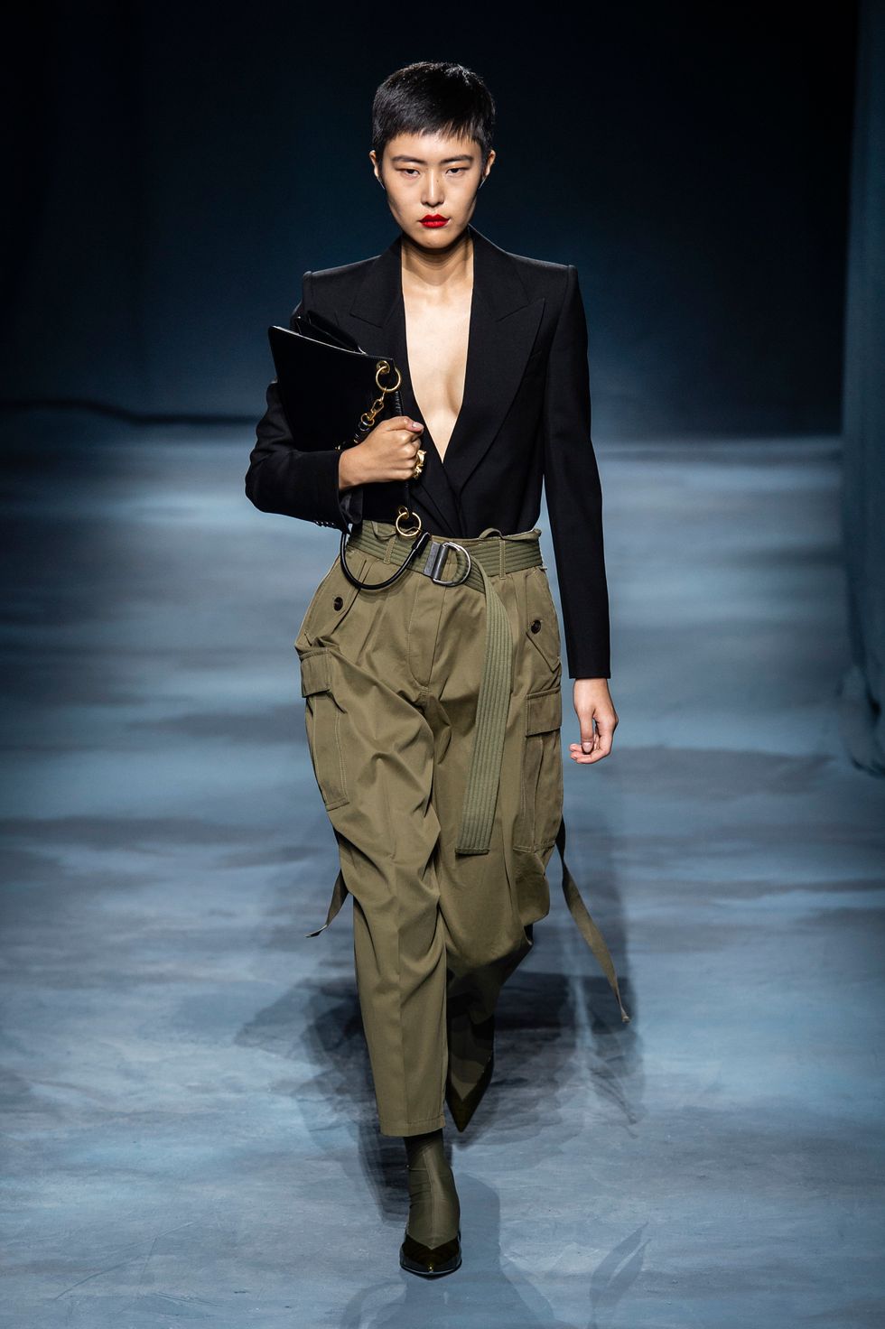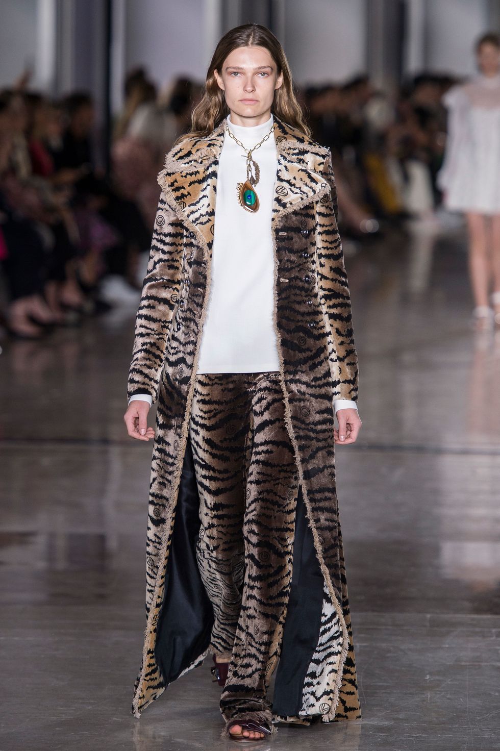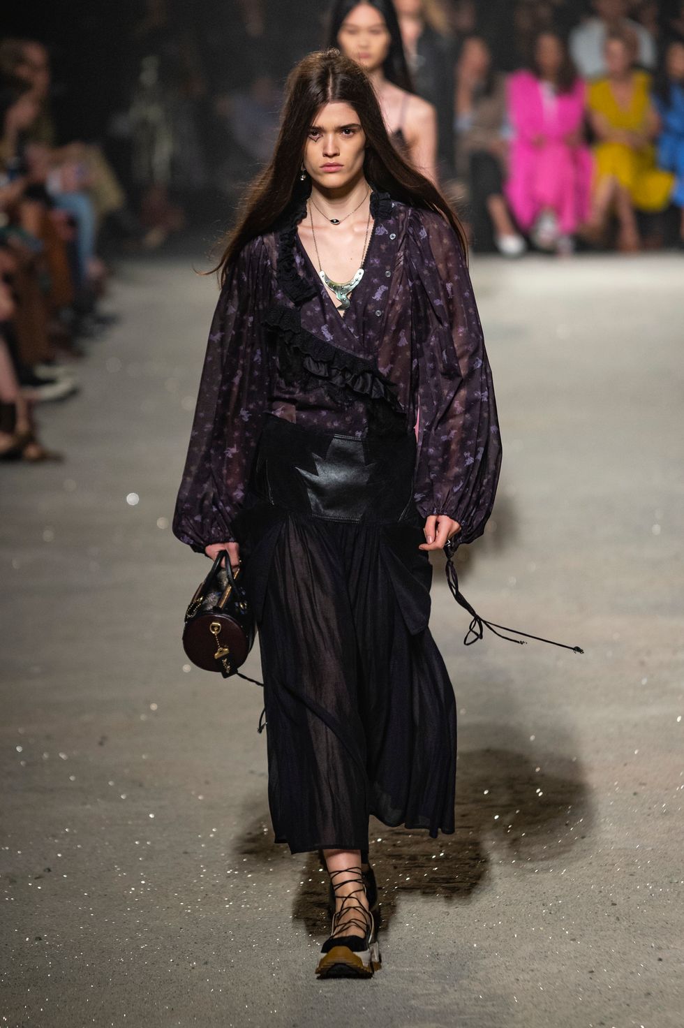 The spring 2019 season is full of bold statements. Sexy looks from net dresses and body-skimming bike shorts to the illustrious little black dress balance out quirkier motifs and details like tie dye patterns, faces as prints, and acid wash denim. Burnt orange and ombré gradations make for fresh additions on classic silhouettes. For the glamour puss, there are ostrich feathers, billowy sleeves, and headscarves abound. More utility minded style mavens can look forward to paratrooper ensembles, ski goggle-esque shades, and giant bags for ample storage. See more of our favorite spring 2019 trends, below.