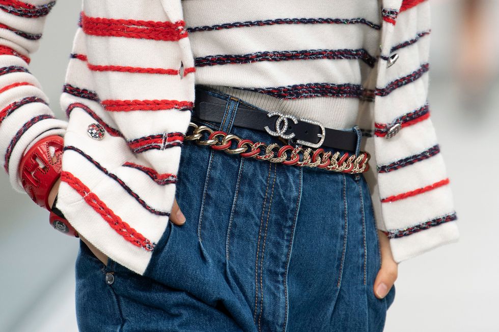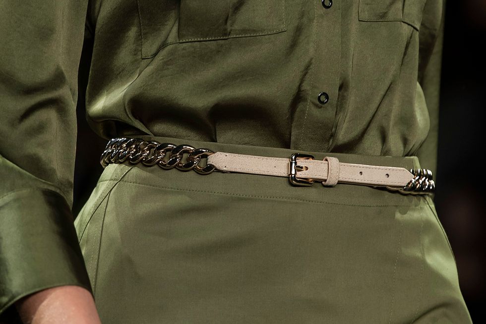Used more as a decorative element than a practical one, chain belts have become a popular belt option this season.