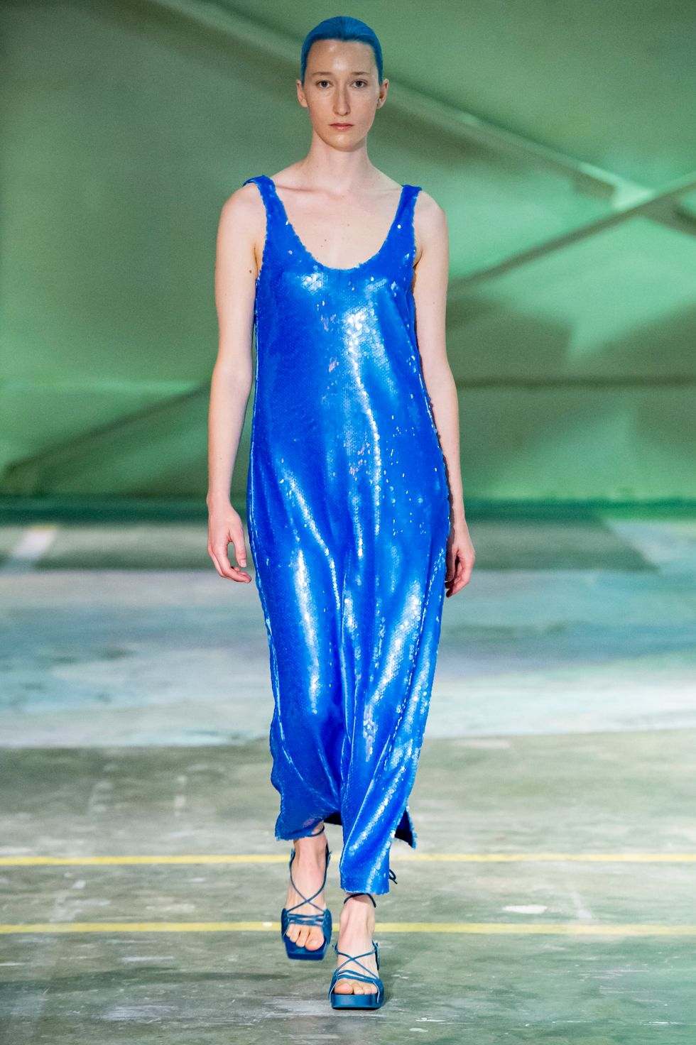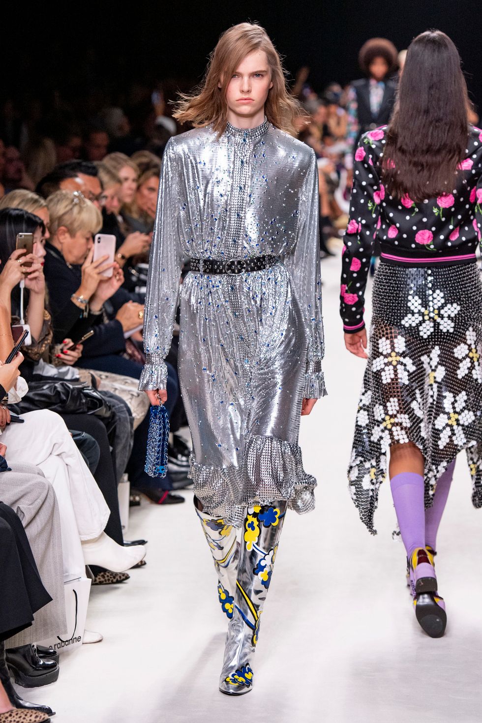 Sequins, lamé, and all kinds of shimmer were shown on the runways, from the sleek silhouettes at Eckhaus Latta to the silver metallics at Paco Rabanne.