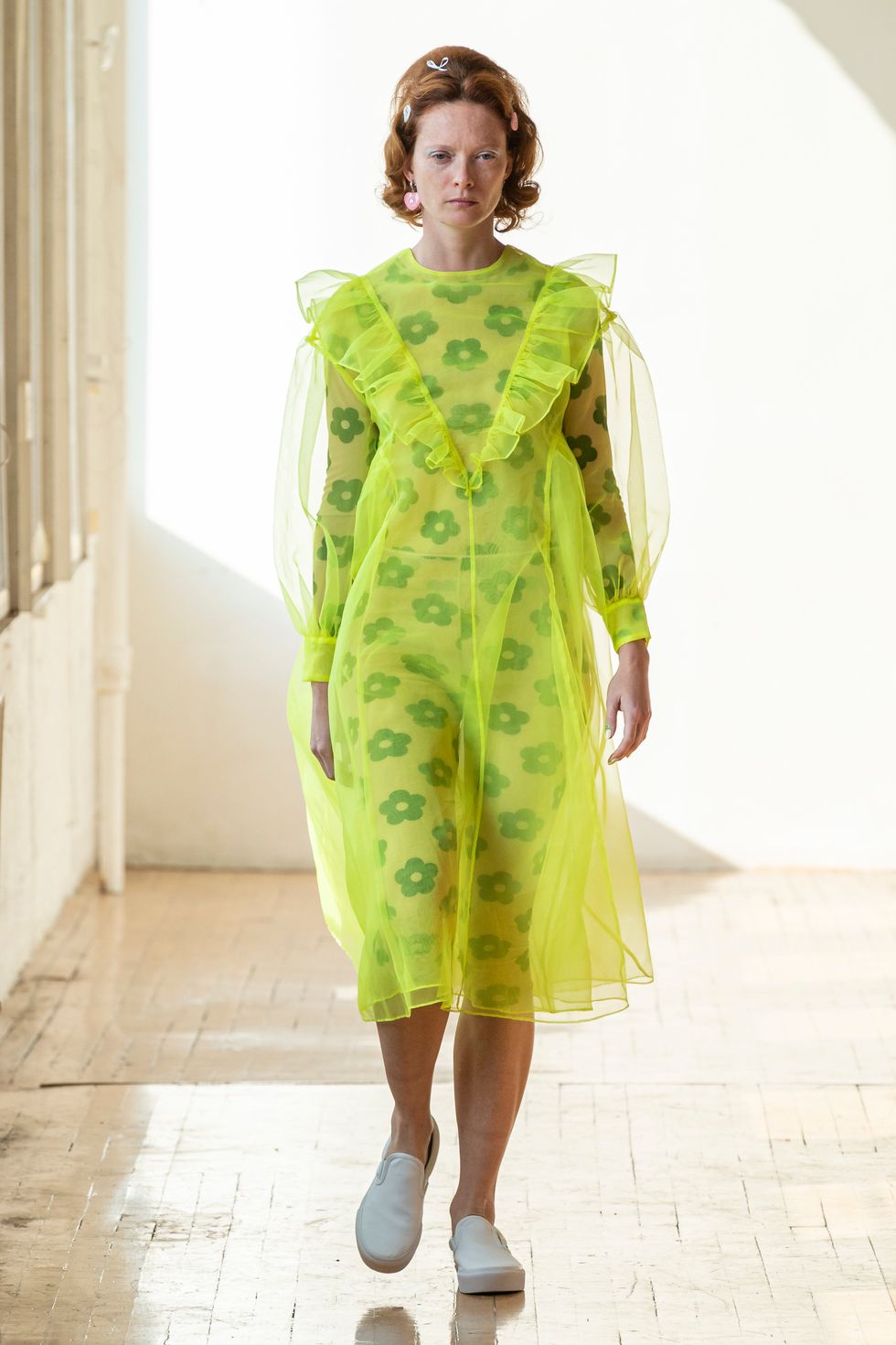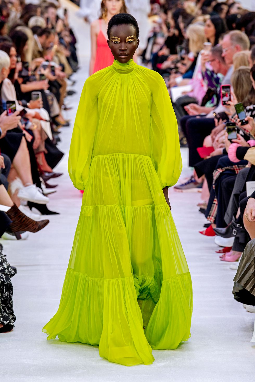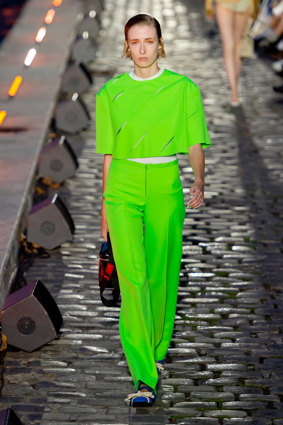 Call it neon, tennis ball yellow, or highlighter green, the acid hue took form in structured separates and fluid dresses.
