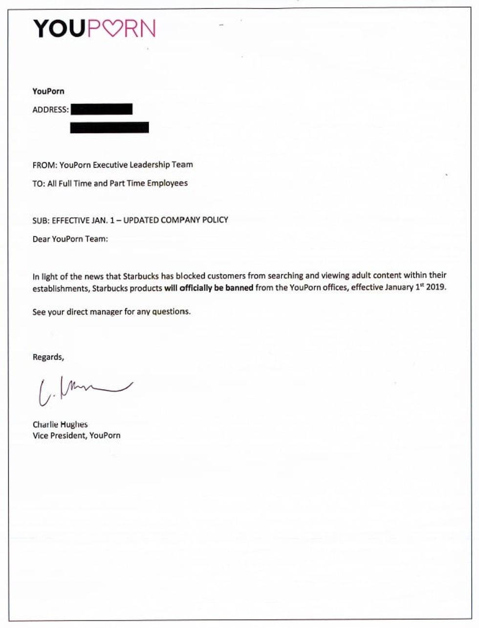 But you know that the Starbucks Porn Ban saga doesn't end there. In retaliation, popular porn site YouPorn has fired back with a ban on Starbucks in there offices. Circulating a memo among the company's staff, YouPorn instituted an internal policy change that would ban all Starbucks products from the company premises.