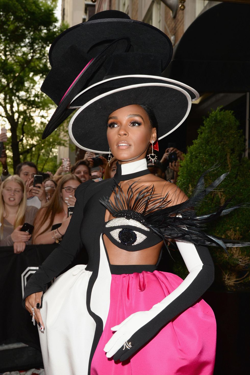 Kim Kardashian gets cinched into her custom Thierry Mugler minidress with dozens of delicate crystals that resemble raindrops spilling from her body. Nearby, sisters Kylie and Kendall Jenner transform into over-the-top, pink and orange Versace muses, their floor-length gowns decorated with enough feathers to rival a Las Vegas showgirl. In the same building, Jared Leto cradles an exact replica of his own head, while Janelle Monáe balances a towering headpiece of oddly stacked top hats. Then, there's Gwen Stefani, Tracee Ellis Ross, Salma Hayek, Bella Hadid — all within walls of each other. The transformations are extreme, the stars are bright and the excitement from glam teams — hair extensions, nipple tape, coffee runs — fills every hallway.