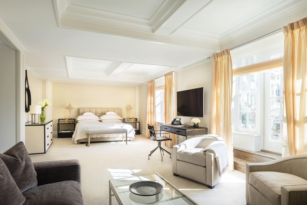 Upstairs, though, the rooms offer more a calming escape from the city — the type of effortlessly plush, cream-colored suites you can stay in without leaving once. This is where you're encouraged to finally slip into that matching white robe and slippers set, and take it off only to later slip into the bath. If you choose to, of course, the area is ripe with nearby activities, from shopping (Burberry, Cartier, Louis Vuitton etc.) to dining and plenty of art galleries. Should you opt for a more private staycation in, the views from The Mark put you eye level with the Manhattan skyline — a fresh, new perspective on a scene that, quite honestly, never gets old.