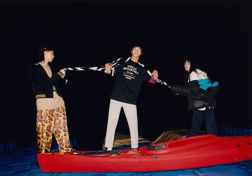 Of course, this being Stella McCartney, Shared is eco-friendly (the brand is a leader in sustainable fashion, having never used leathers, furs, exotic skins or feathers since its 2001 founding). Most notably, the capsule's jersey tees and sweatshirts are made from 100% organic cotton, while the aforementioned parkas are crafted from recycled polyester.