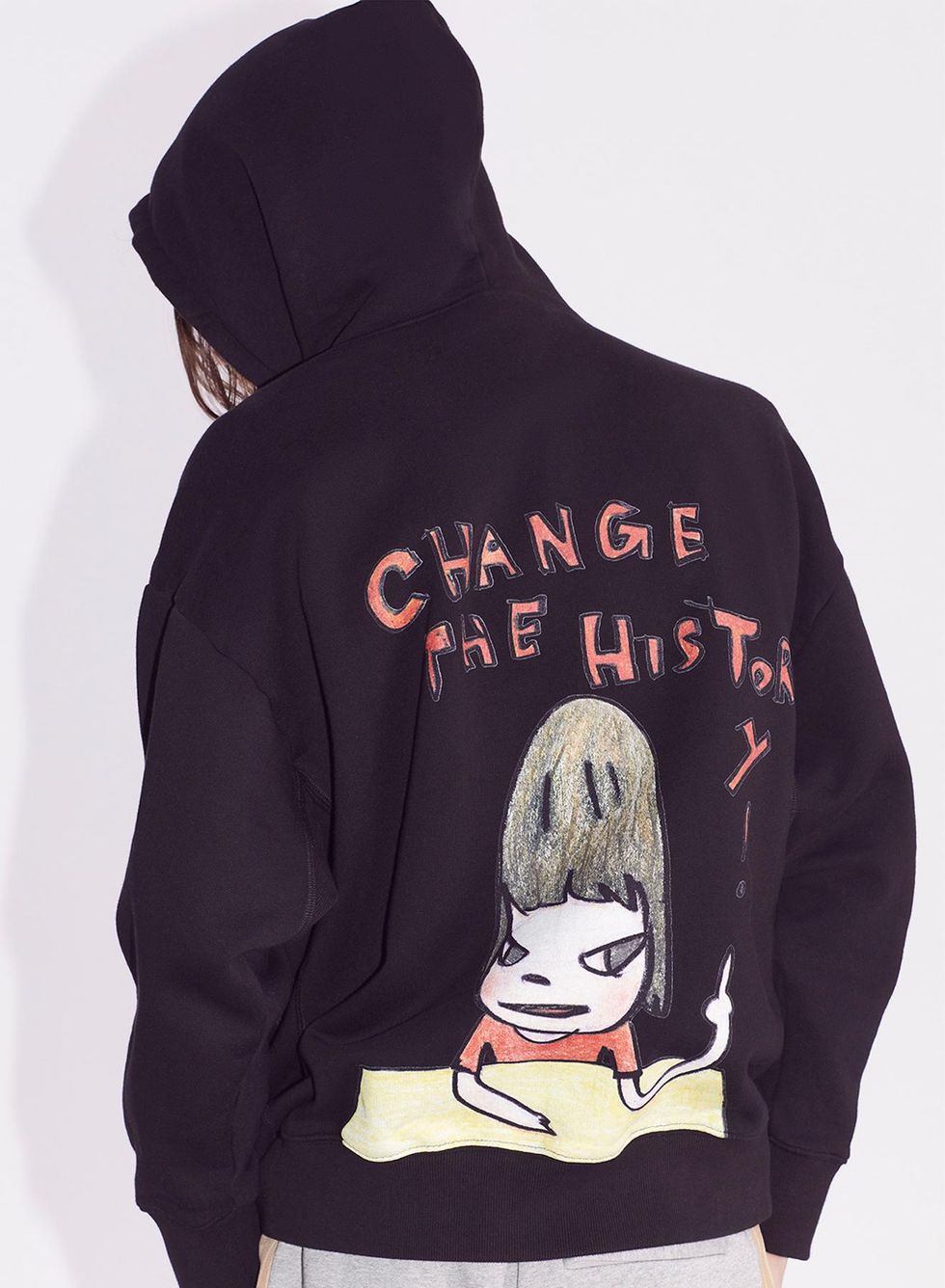 As for his fashion link-up with McCartney, which is part of her Spring 2021 "Shared" unisex collection (a genderless capsule she first introduced last year), Nara is lending his cheeky manga-style imagery and punk-rock influences to a selection of collectible ready-to-wear and accessories. These include pieces with slogans like "We Are Punks," "Change The History" and "Don't Waste Another Day."