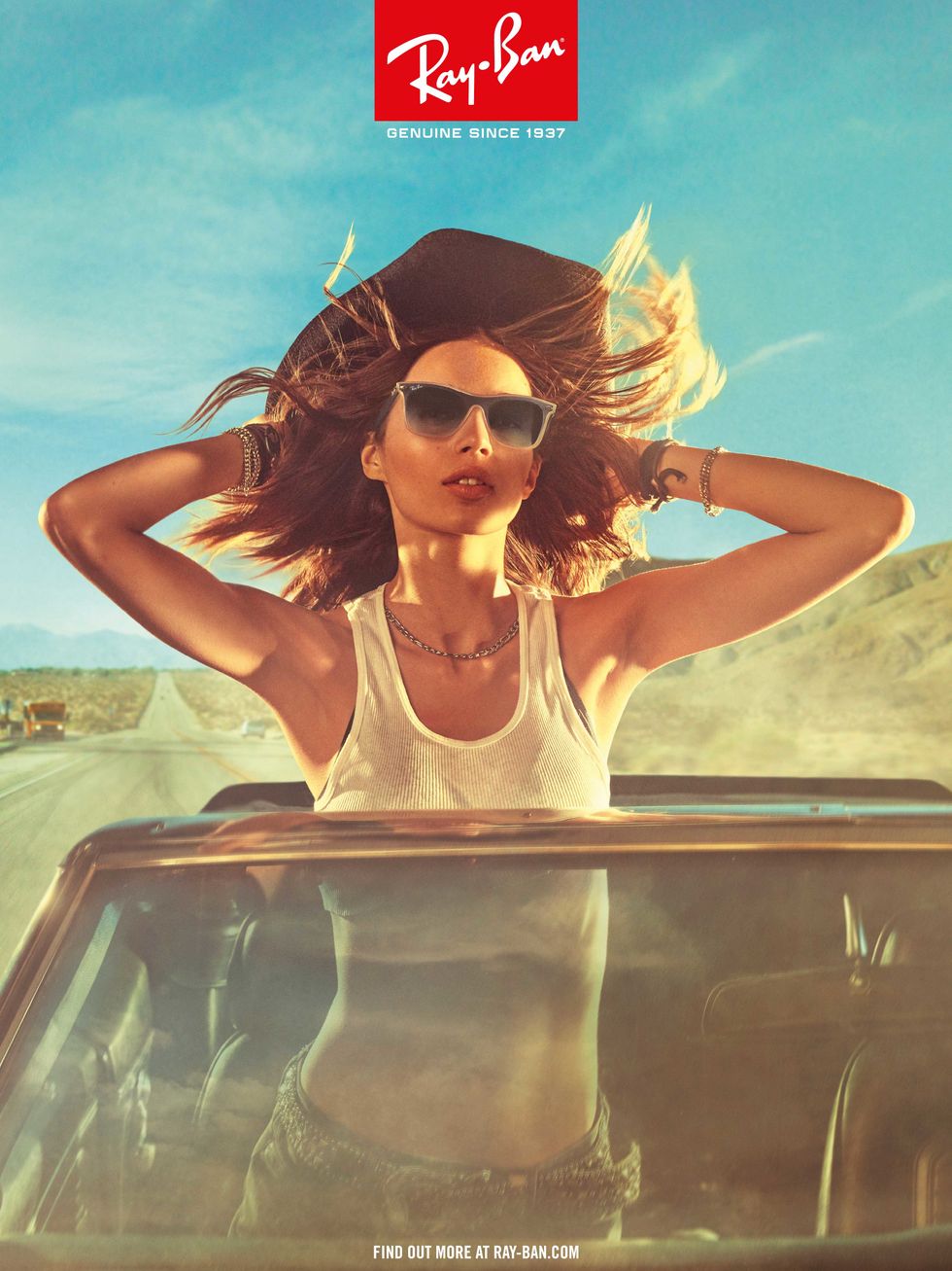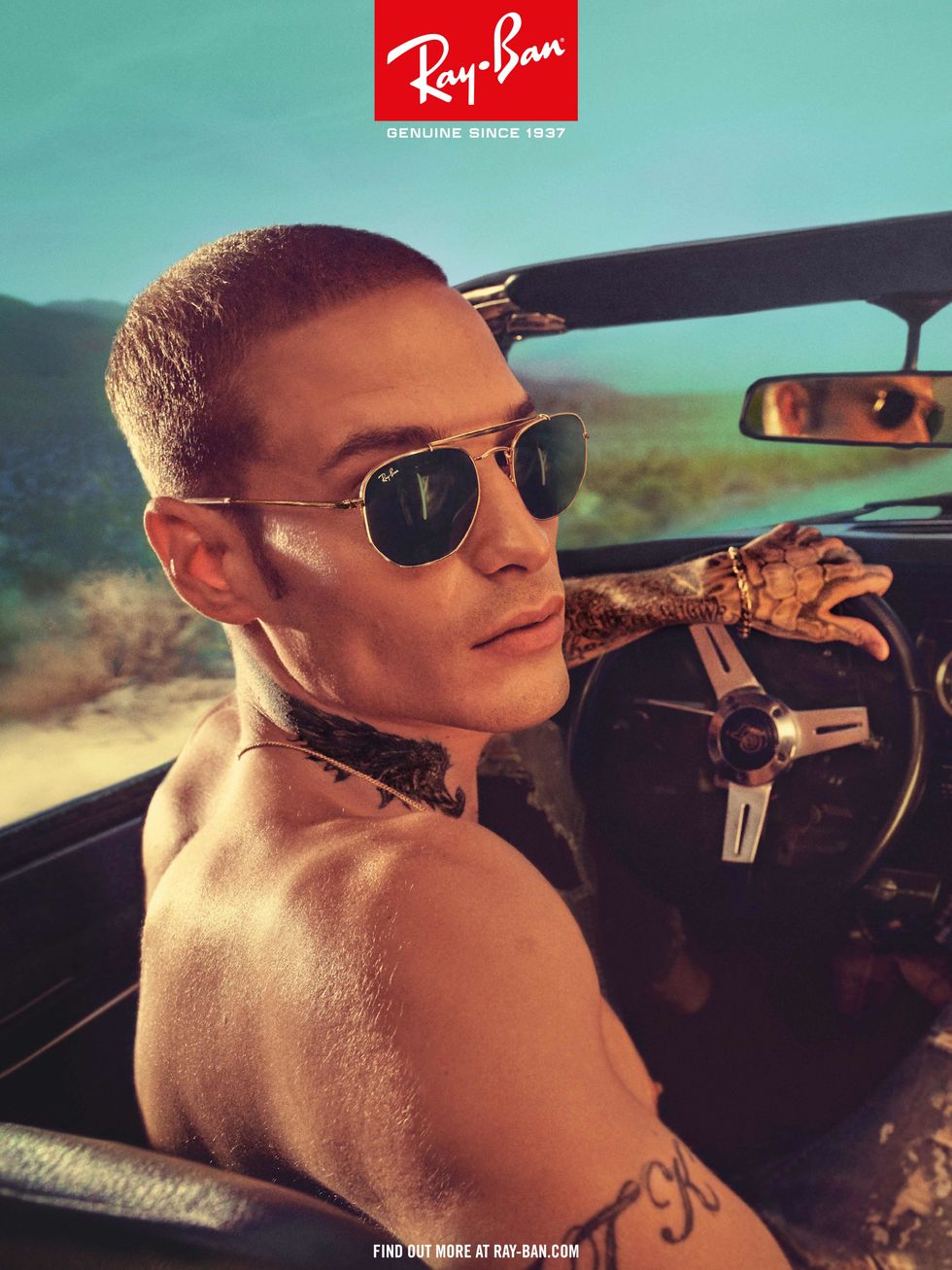 "It's about freedom and letting go," Klein says of his treatment, and a road trip is the perfect symbol of this classic western liberation. Klein's imagery is divided into four distinct personalities based on Ray-Ban's shades — The Marshal, Wayfarer Blaze, Aviator Evolve, and Hexagonal — and raises questions about a society trapped by Internet, politics and fear.