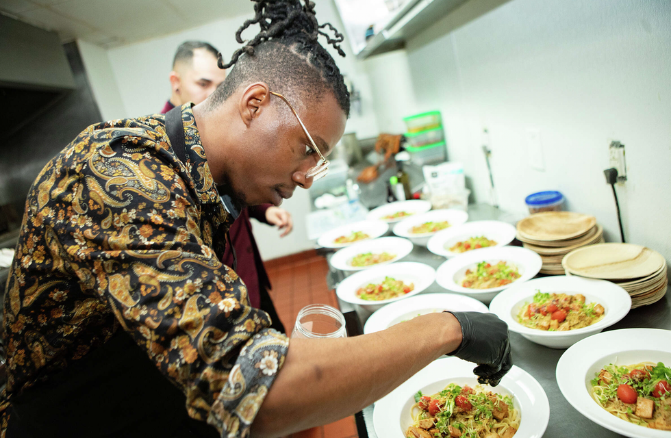 “There’s all kinds of aromatic, piney and fruity qualities that come from terpenes in cannabis that are intensely complimentary to my food — whether it be strawberry terps in a watermelon salad or keef in the dredge for a medicated fried chicken,” says Johnson, who centers the African diaspora in his cooking. “Our own food diaspora reflects the migratory path of slaves leaving West Africa, landing in the Caribbean, and finishing their journey in the Carolinas.”