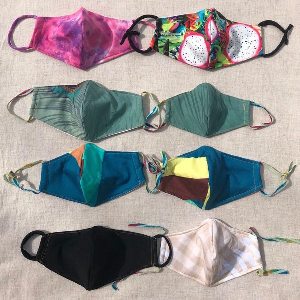 These reusable double layer face masks are made with leftover Indian handloom cotton and custom-printed fabrics from their Brooklyn home studio.