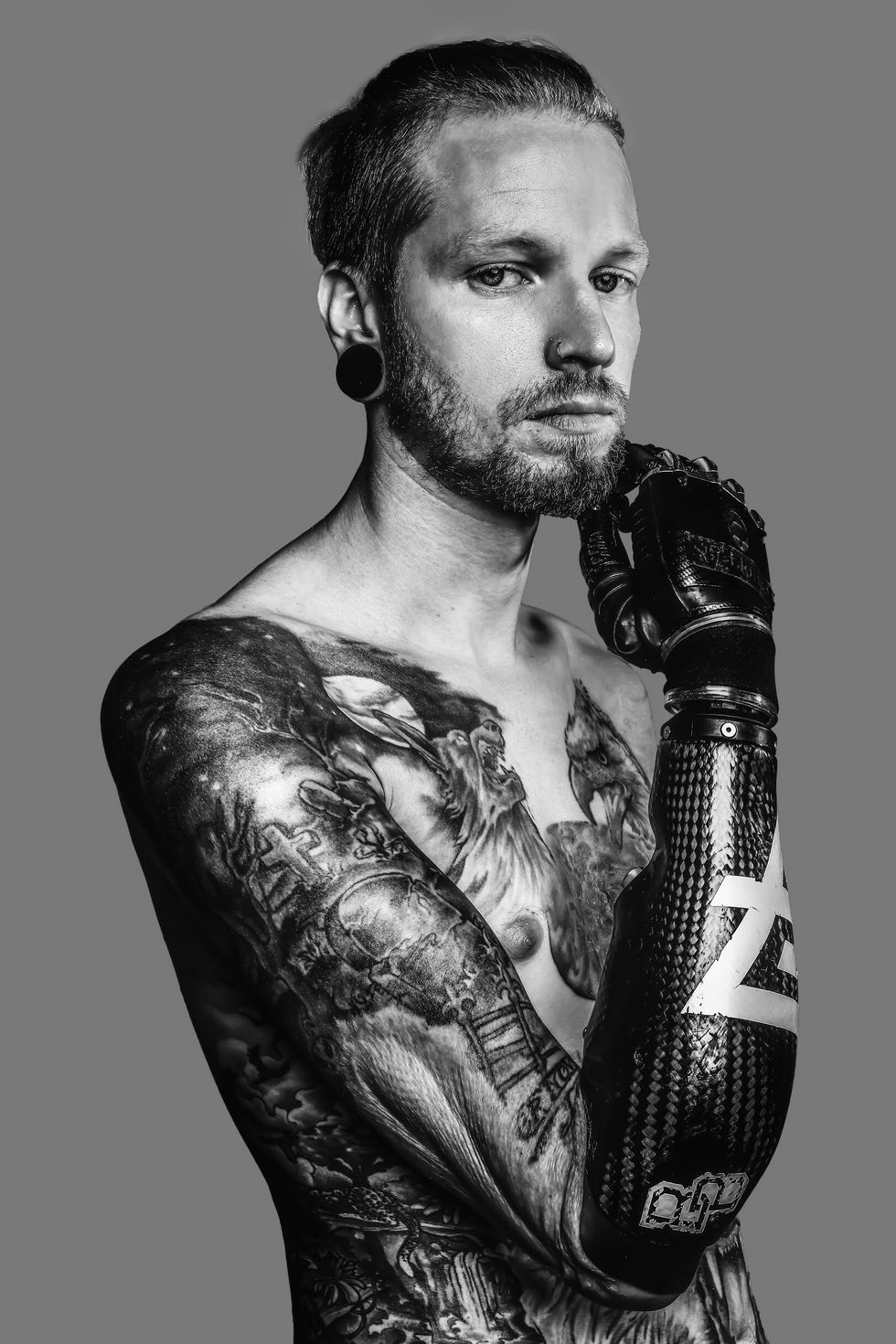My amputation site is so high on my arm that the arm I designed with The Alternative Limb Project was never expected to be used for function, only as a design piece. In order to seek a functional bionic arm in the future, I'm fundraising for titanium bone anchors which will stick out of my skin in order to attach a bionic arm." — James Young