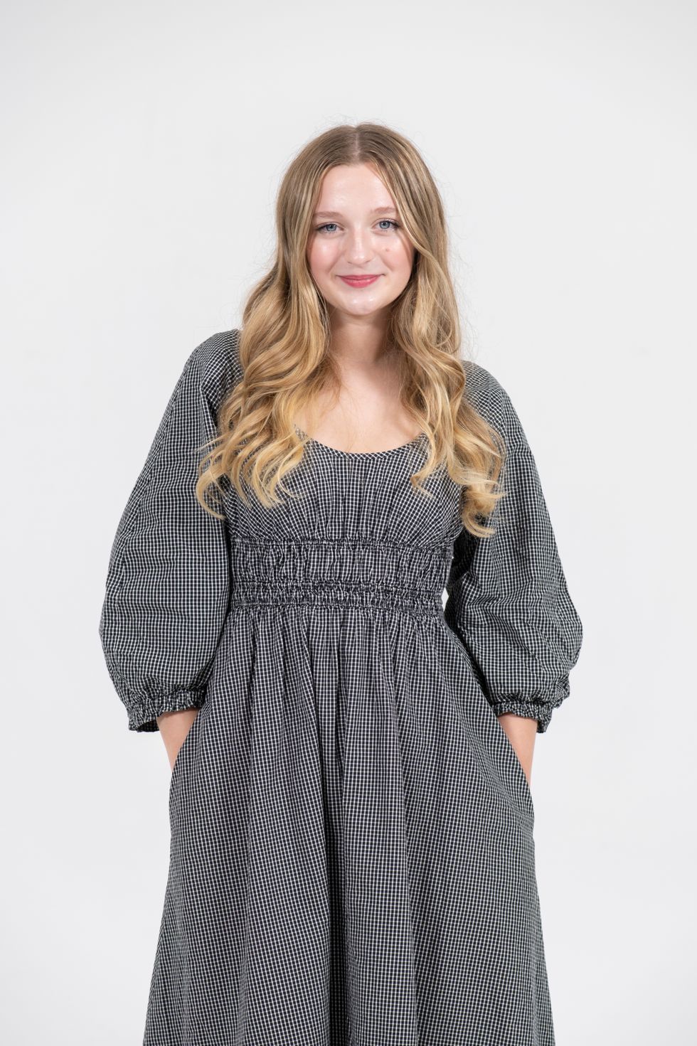 Lizzy Truitt has a deep-rooted connection to cotton, stemming from her family’s cotton farm in Alabama, to now learning about its role and impact in the industry. In fact, when she presented her BFA thesis collection at Kent State’s annual fashion show, the entire collection was made out of cotton in hopes of pushing its use more within the industry. Her journey into fashion began in middle school, inspired by a career placement test and her mother and grandmother’s sewing lessons. Her capsule collection, “Life Lines” explores the intersection of girlhood and womanhood, drawing inspiration from the women in her life and their influence on her identity, characterized by feminine and romantic element like quilts and bows, and incorporating line art and quilting to symbolize the passage of time and the complexity of womanhood. Truitt’s ultimate goal is to be a constantly evolving designer, by challenging herself and entering new spaces, and to be a source of positivity and creativity.