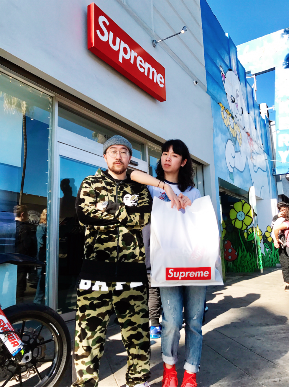 Curious about the hype, I had to see firsthand how this self-circulating economy worked; with the help of my friend jason chu, a rapper and streetwear connoisseur, my first drop at the Fairfax location in Los Angeles was extremely successful. I had my eye on two small box-logo hoodies — a pink and red — and managed to buy both.