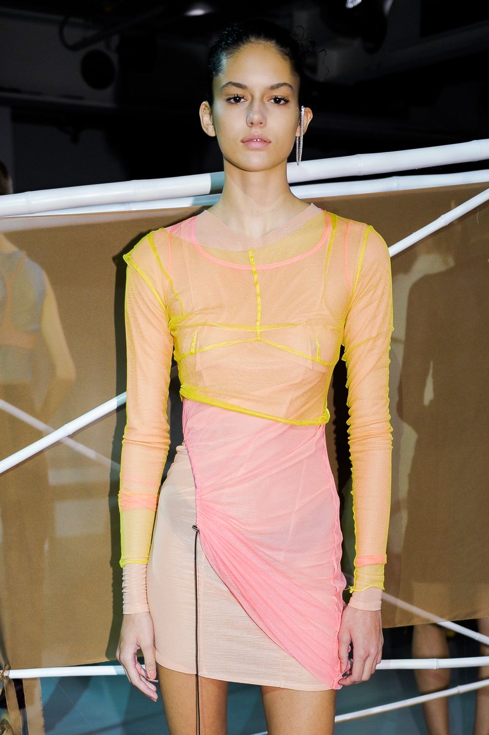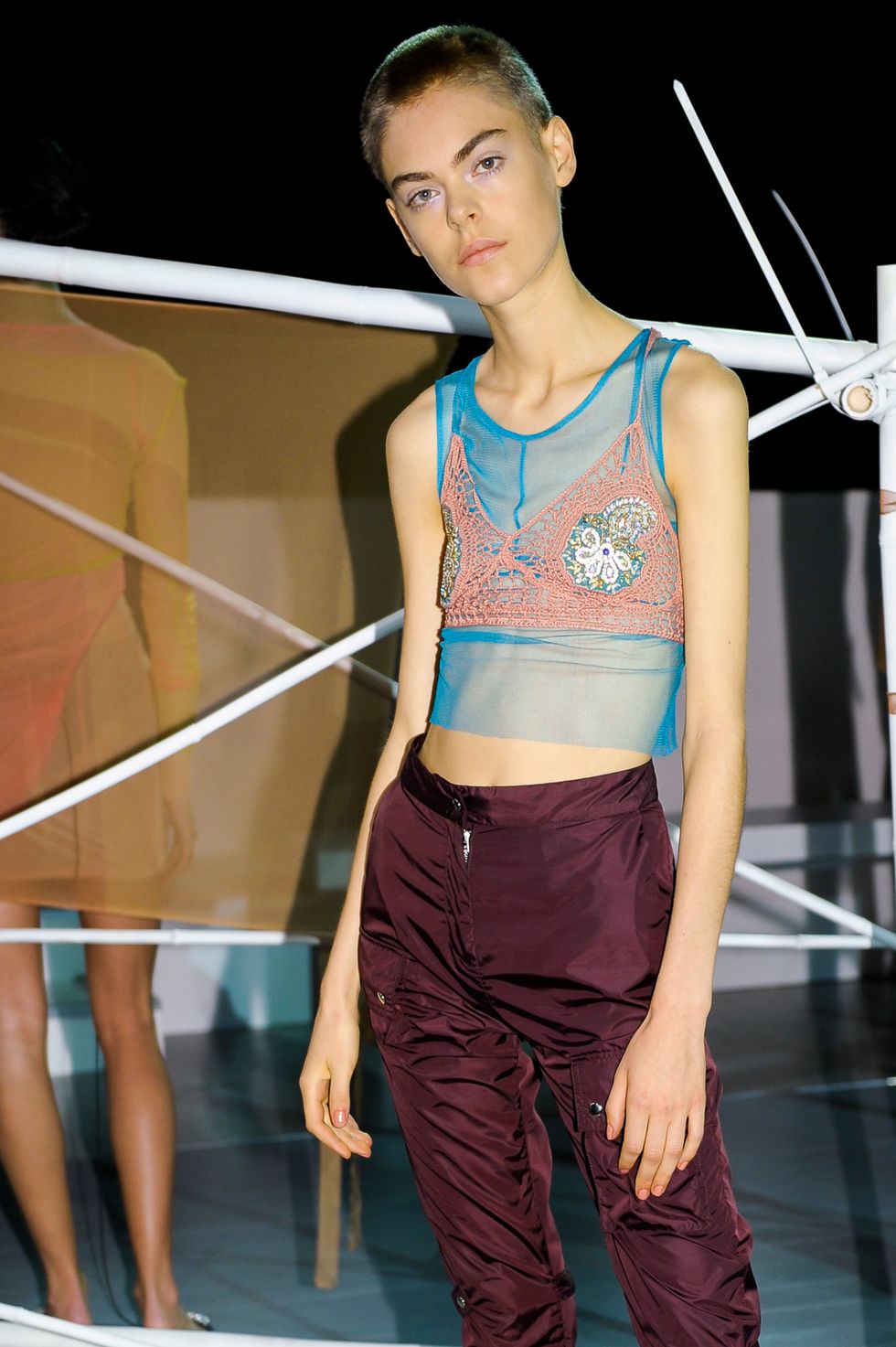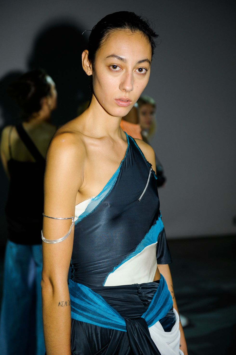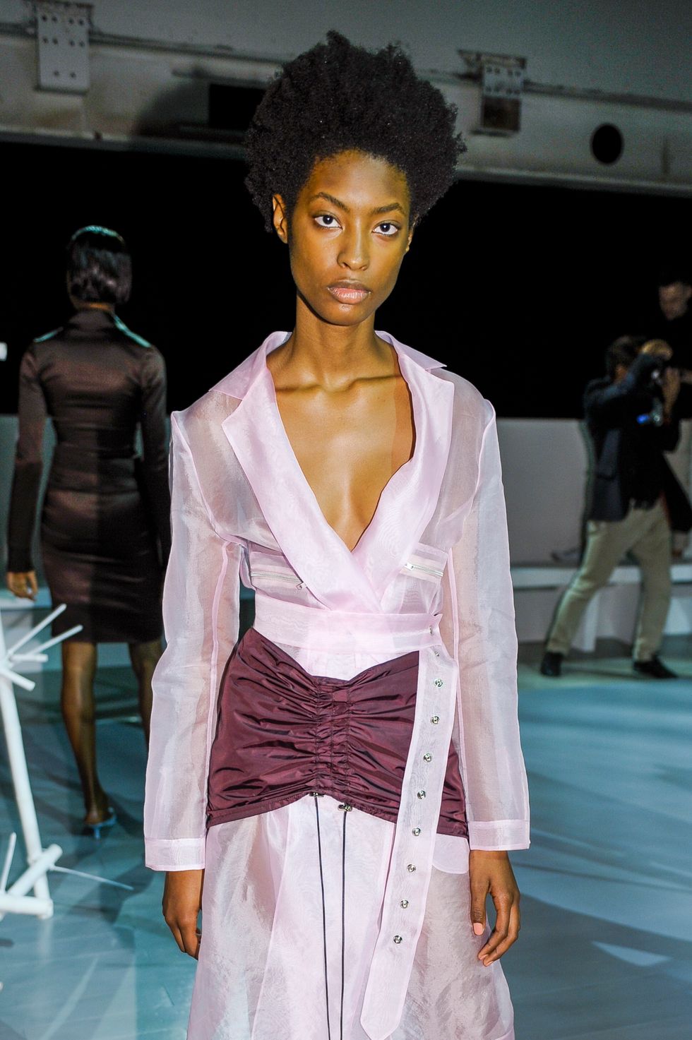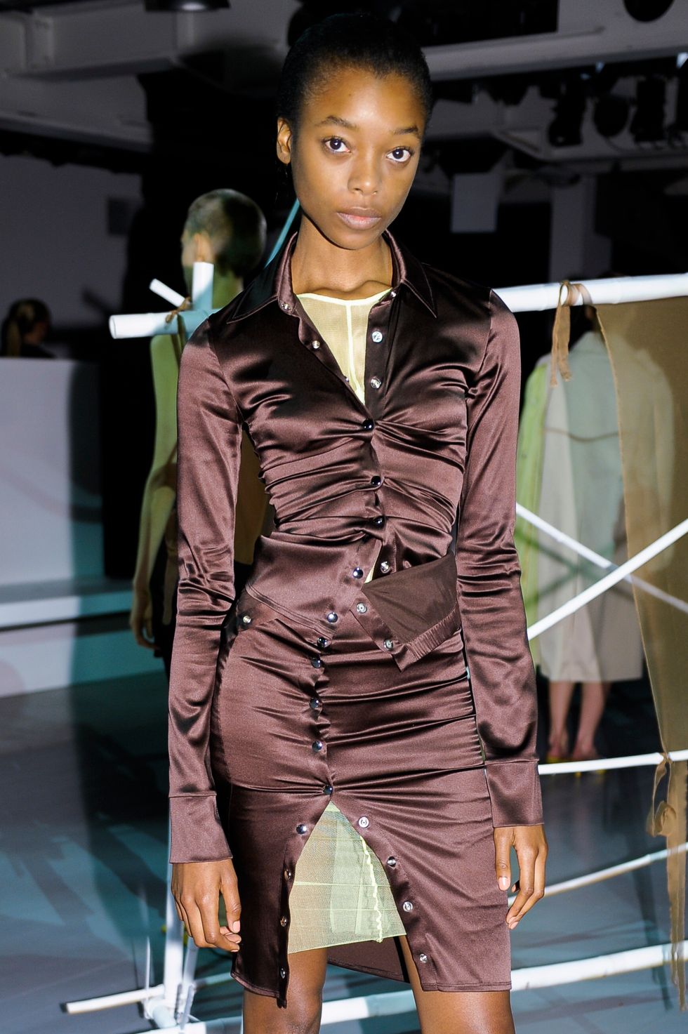 Ramshackle forts were on the menu for British-Indian designer Supriya Lele's first solo presentation. A year after working Fashion East's runway with five other designers (including fellow spring 2019 standout Matty Bovan), Lele presented a stunning collection of trench coats, trousers, sheer tops, and saris in a set that melded criss-crossed PVC piping with swaths of stretched beige fabric.