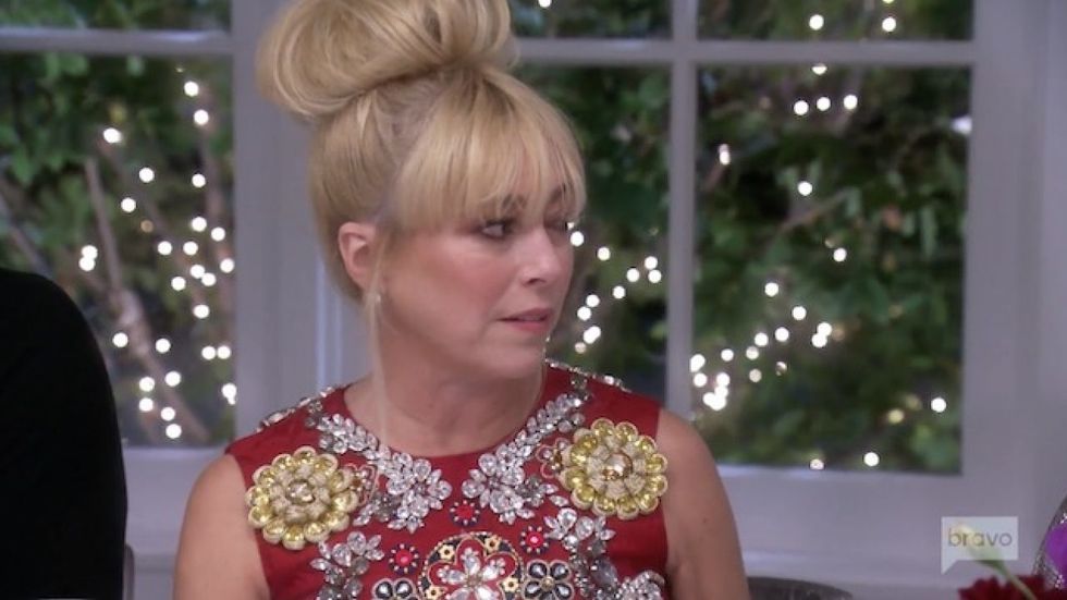 One episode in, and she was already making headlines. "'RHOBH' newbie Sutton Stracke ruffles feathers with Rihanna Fenty diss," reported Page Six after Stracke asked Dorit Kemsley who made her corseted white blazer dress. "Fenty," Kemsley responded. "It's Fendi?" Stracke followed-up. "No, Fenty. Rihanna Fenty," Kemsley explained. Stracke was less than impressed. "If a celebrity has done a collaboration, I could care less," she said in a confessional. "I mean, if God came down and helped collaborate with Tom Ford on this dress, that does not interest me." (The dress is not a collaboration.)