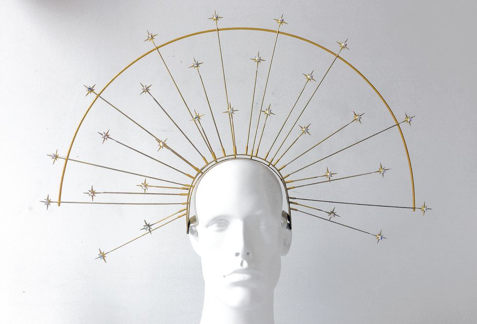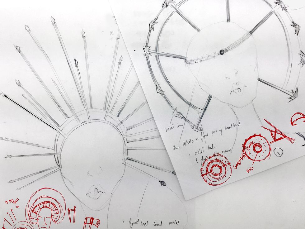 Well, we made two halos for SZA actually. It was cool because we were asked to come up with two fully realized but different halos for her and the team to choose the best one. The one we finally went with is a combination of cast brass pieces welded on brass rods tubes and bands that form the headpiece. The halo part is made of painted wood. It was a balancing act to construct the final piece, but it's so light and clean, I love it so much.