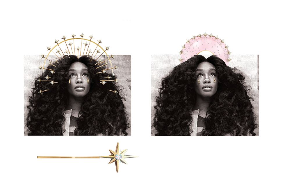 While we wanted to make sure to create a nod to angelic halos with our headpiece, we wanted to add that minimalistic and sharp line to the piece. We were all in agreement with SZA that the piece had to be as thin and light as possible, and the cast stars had to be graphic. I also wanted to make sure the stars had aggressive points to them, but I like the sleekness most I think.
