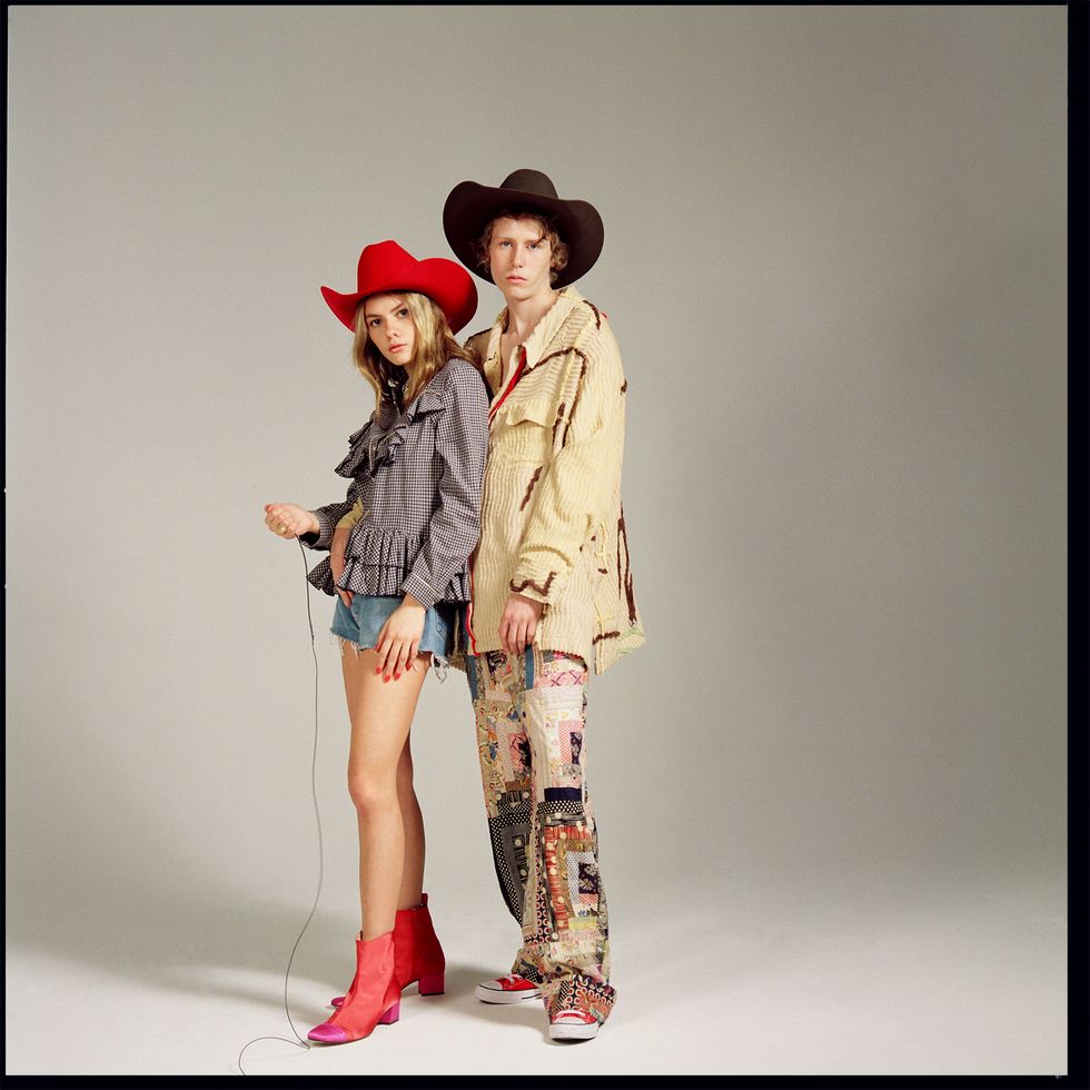 Fionn wears hat by Bailey Hats, top and pants by Bode and shoes by Converse.