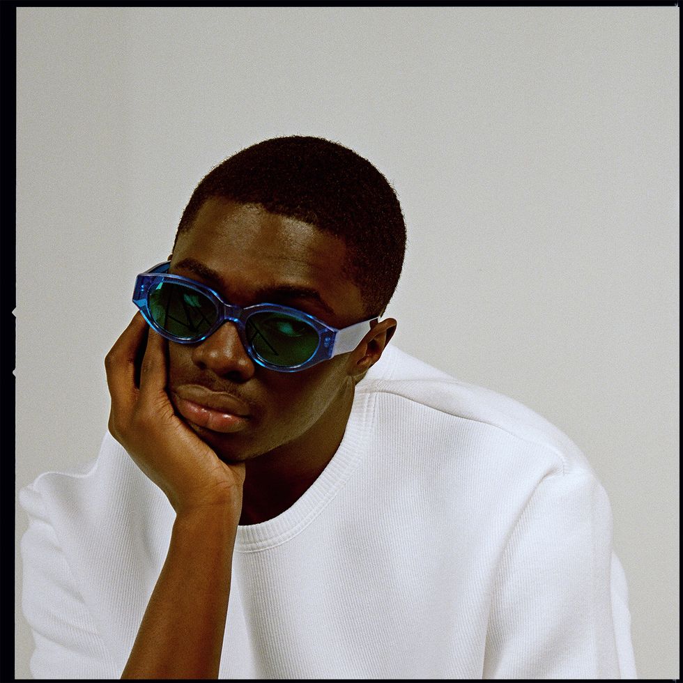 Sheck wears sunglasses by Retrosuperfuture and top by DKNY.