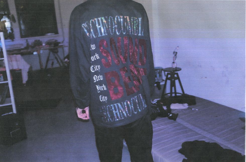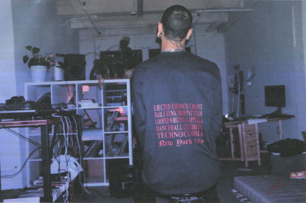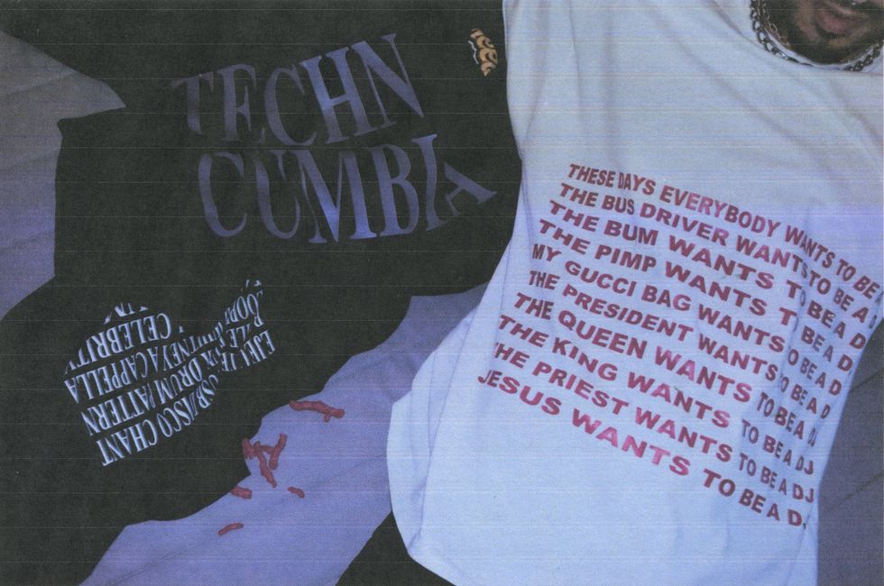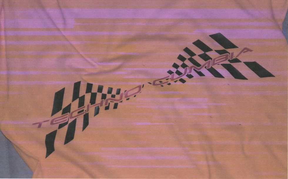 "It led to us slowly working on designing these shirts to feel like an extension of the party," LaBeija says. "Considering the culture around streetwear, we wanted to subvert those expectations by creating very limited runs of each design. In many ways, we are really just experimenting with the whole thing. We have a very DIY philosophy which is why everything is handled, designed and physically made by us and we're having this sale in the studio where we make everything. There's no real formula for how we want to run Techno Cumbia but we do know we want to keep things impulsive."