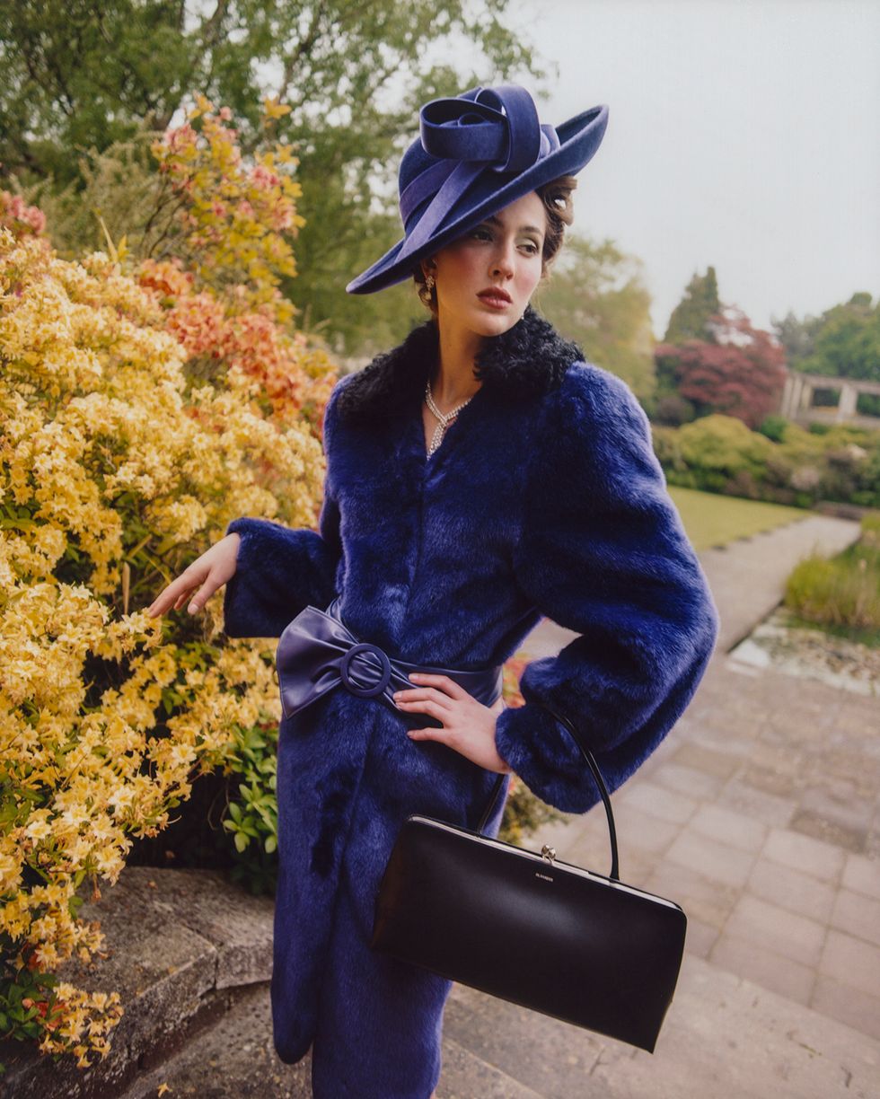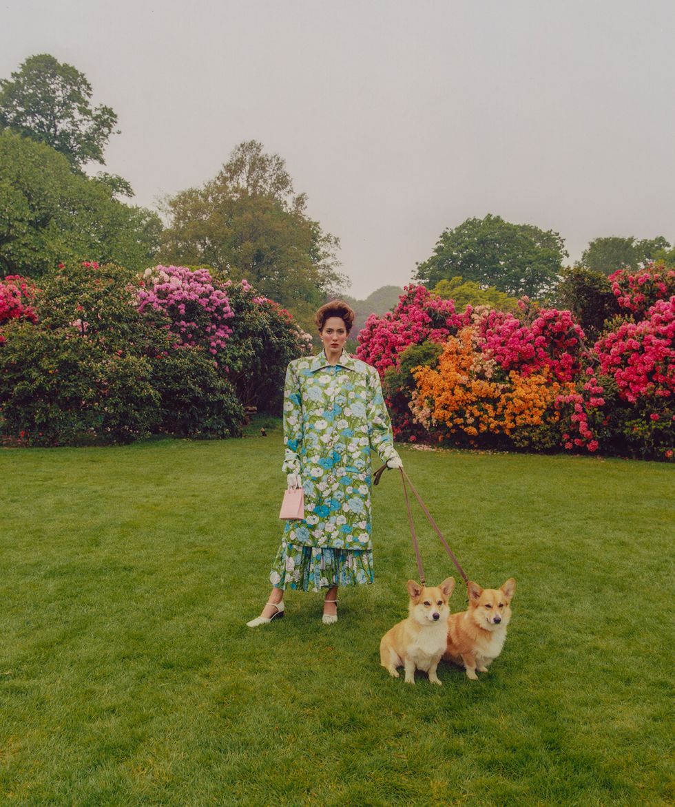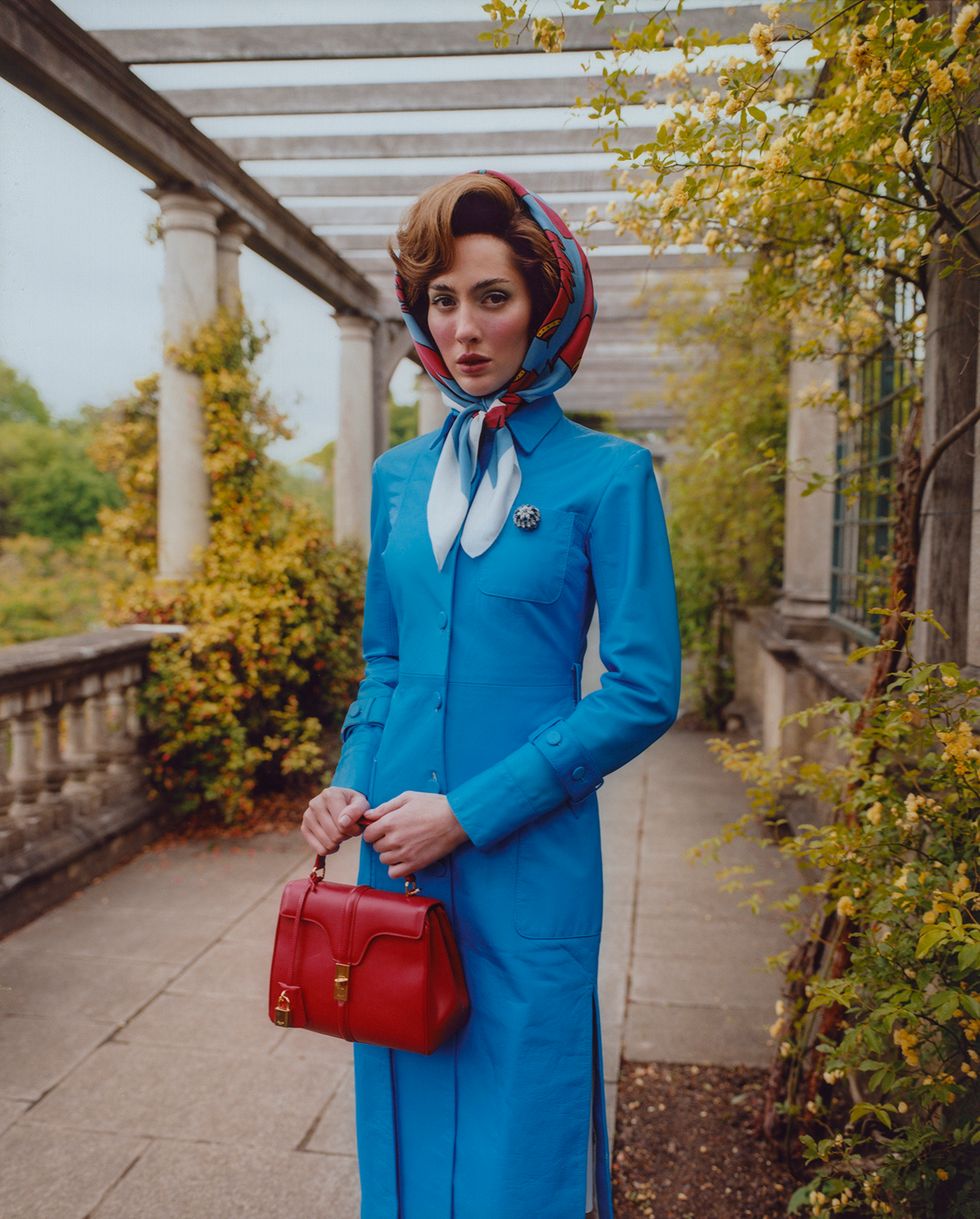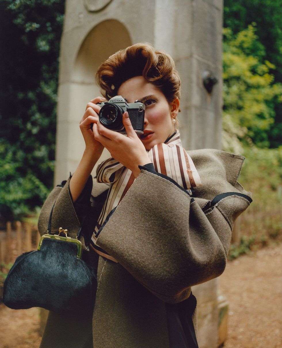 Jacket and skirt: Andreas Kronthaler for Vivienne Westwood, Sweater: Rokit Vintage, Bag: Salvatore Ferragamo, Socks: Mulberry, Shoes: By Far