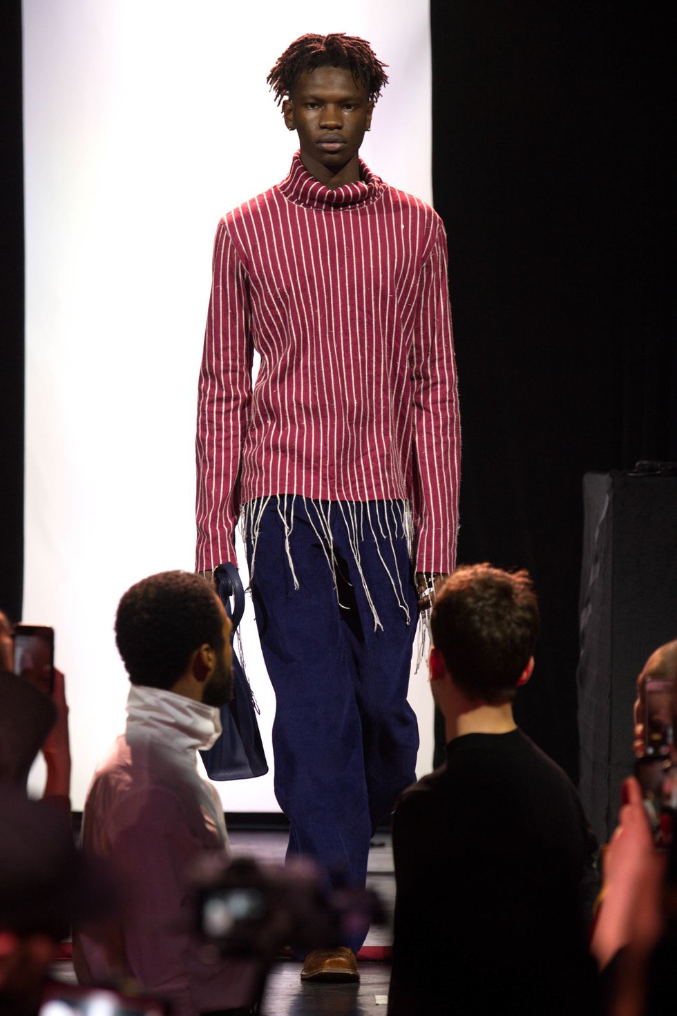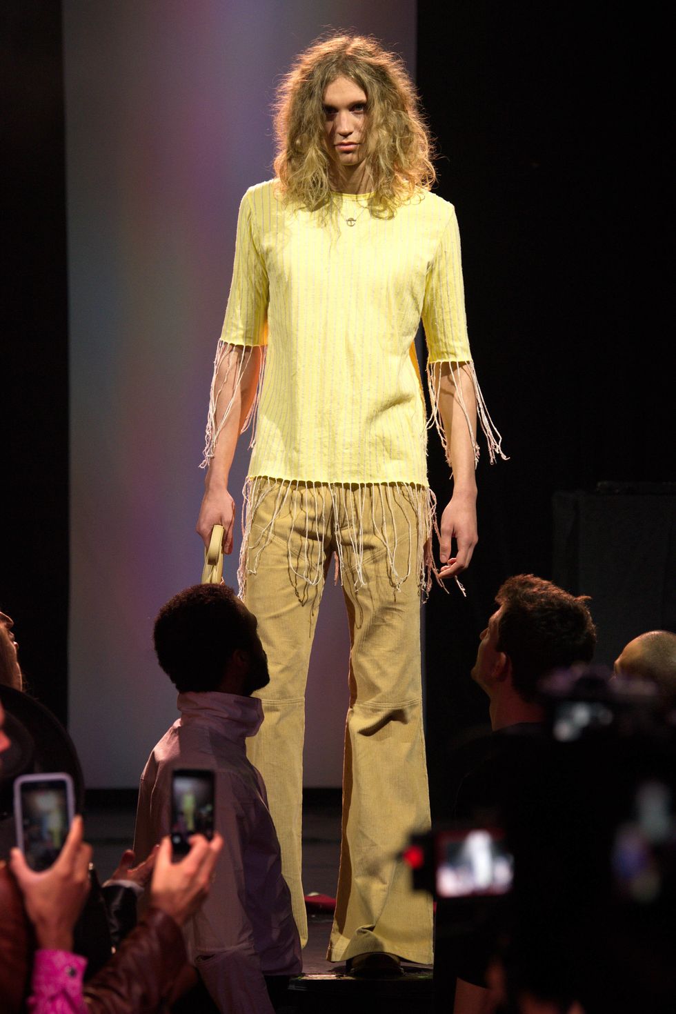 But last night, Telfar also just made everybody feel alive. The first time I ever saw one of his shows, the models carried the designer backstage, tossing him around to cries of "Telfar, Telfar!" Last night he did it publicly, crowdsurfing atop his many acolytes. They shouted their adoration. My eyes ran, my nose crinkled. One garment had tzittzit fringe. L'chaim.