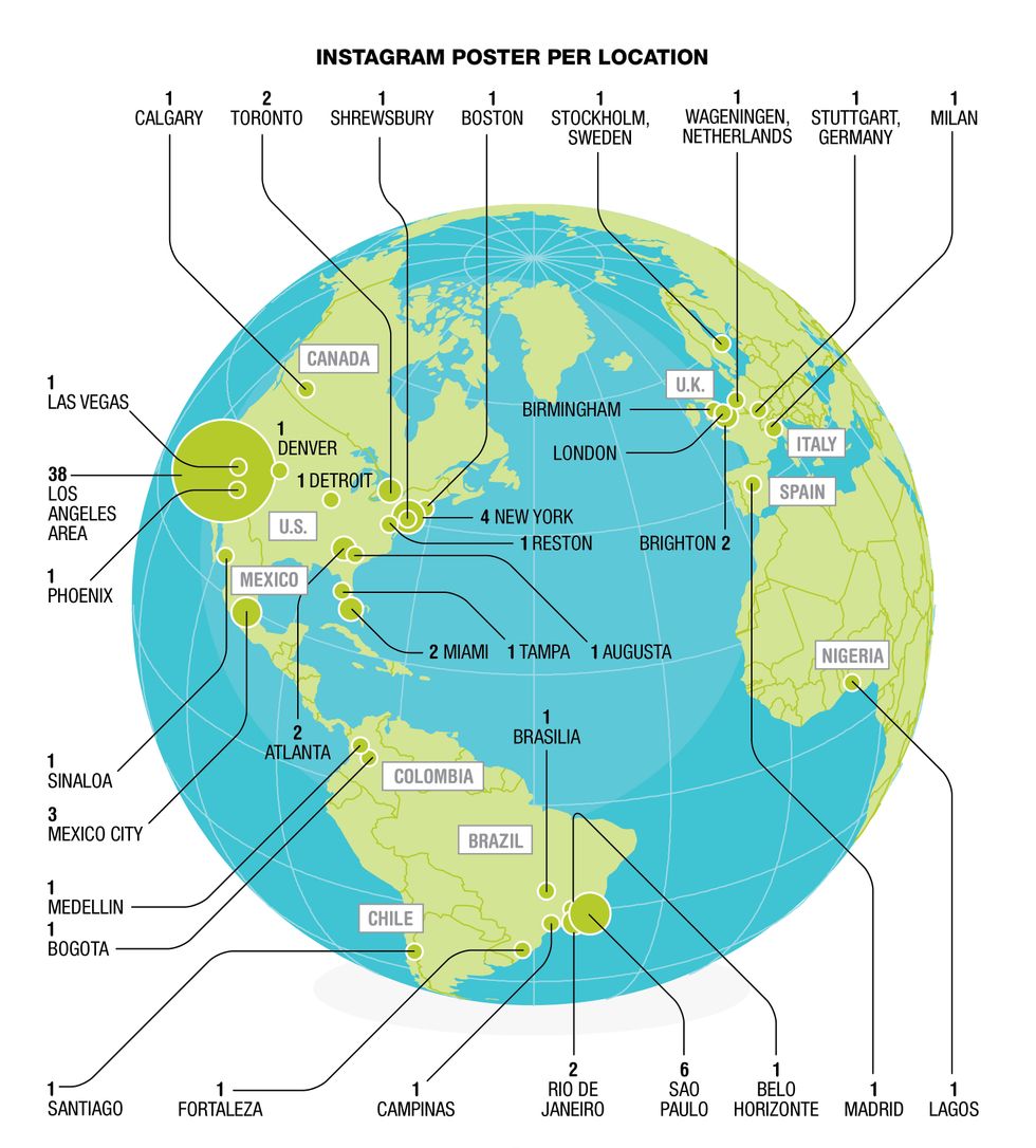 They might not be celebrities in the traditional sense, but influencers gravitate toward California in the same way all famous people do. Instagram's top 100 are mostly female, white and English speaking — and more than a third reside in the Los Angeles area. But that's not to say someone can't build a profile in Lagos, Rio de Janeiro or Perth.