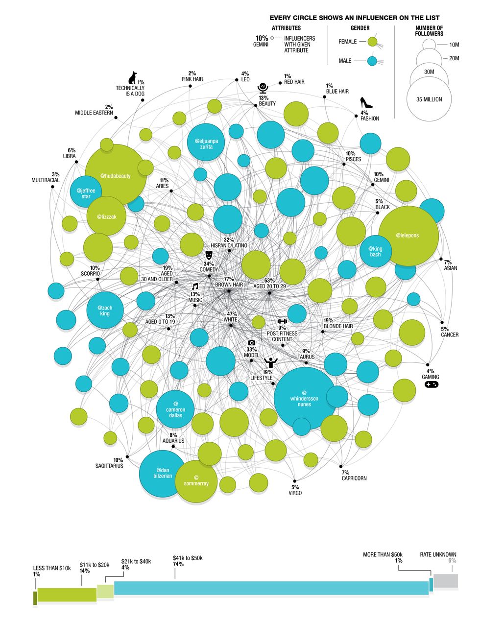 If you're addicted to scrolling, then much of this data won't surprise: Young white American women dominate, many of them choosing beauty or modeling as a focus. But there are plenty of outliers to consider. Brazilian users like @whinderssonnunes and @jumunhoz boast considerable clout, as does @jiffpom, a Pomeranian with nine million loyal followers.