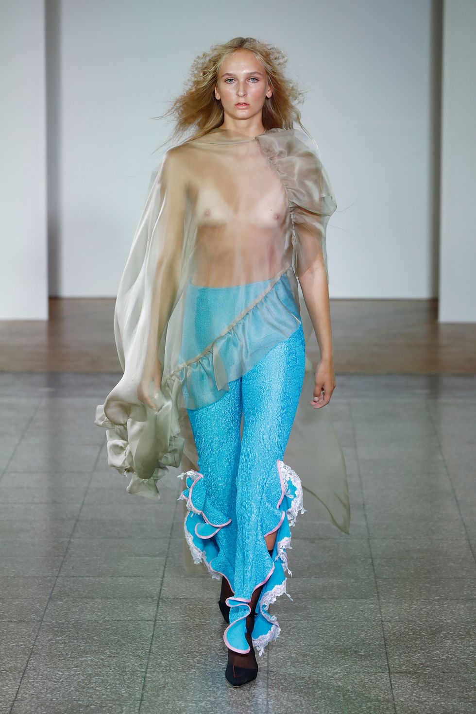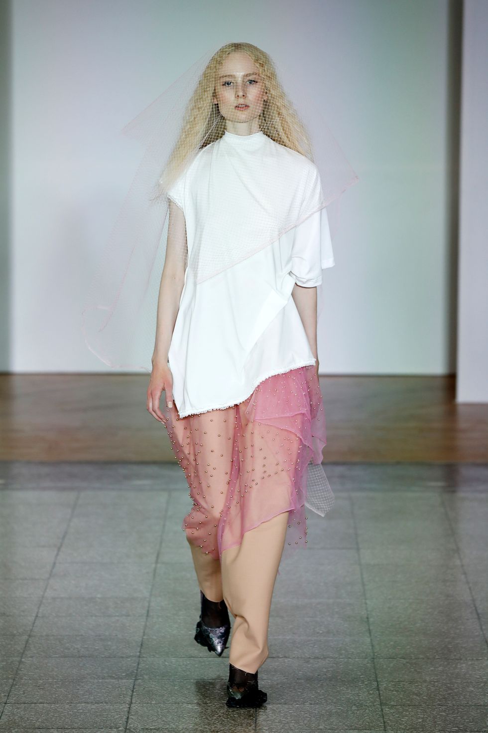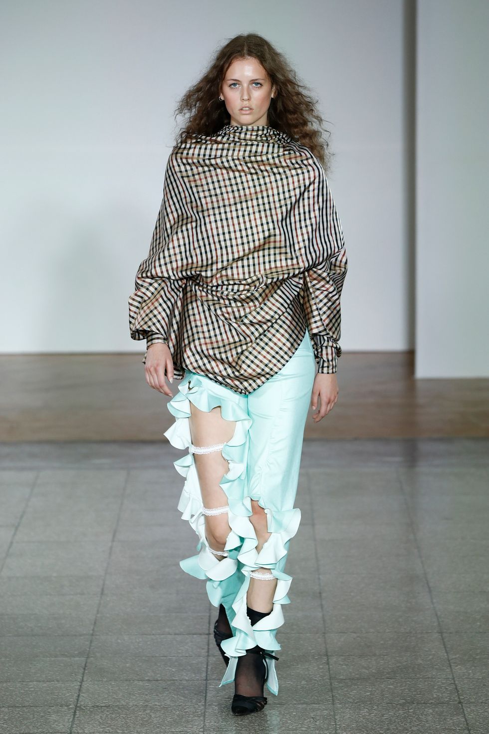 Thorbjørnsen, an Oslo native, returned home in 2015 after nearly a decade in London, and that time away comes through in a distinct, sometimes jarring point of view. It was in London that she received her BA and MA at Central Saint Martins, most importantly under the guidance of the legendary Louise Wilson, who Thorbjørnsen remembers saying that a designer can always do better. Upon graduation in 2012, she founded her own namesake label in London (after interning for cult brand Meadham Kirchhoff), but has always maintained a presence in Norway.