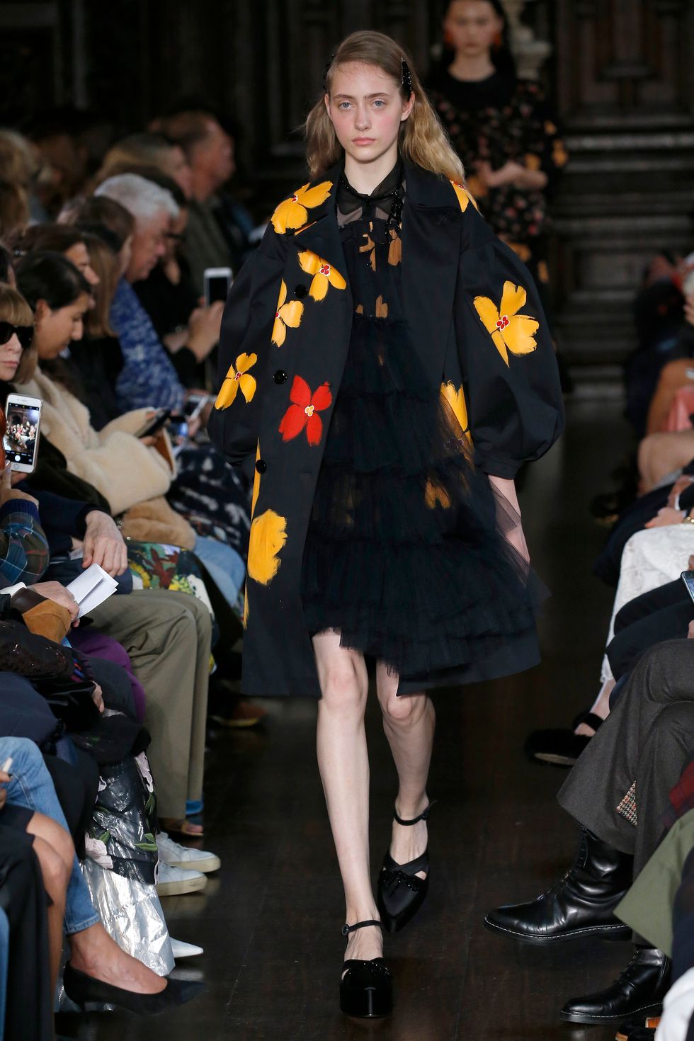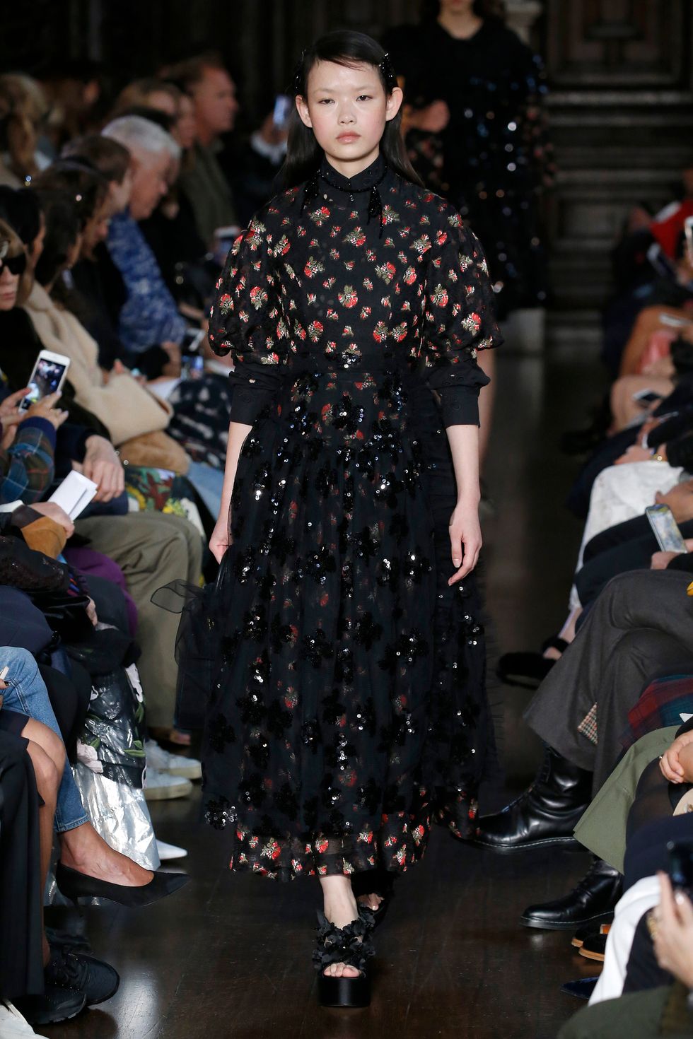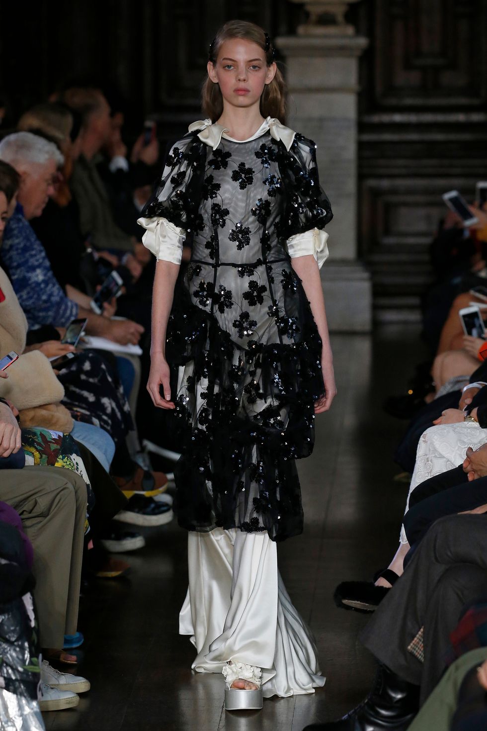 Simone Rocha's silhouettes are unmistakeable. They look like pieces of different garments are randomly sewn together to create a gorgeously balanced, chic, arty look. The pieces with sequined flowers and lots of ruffles were our favorites.