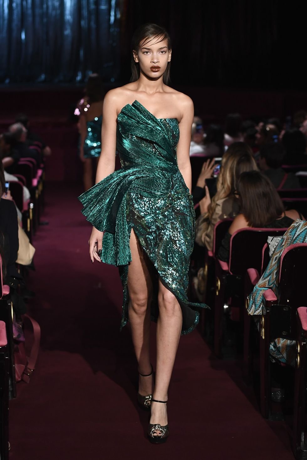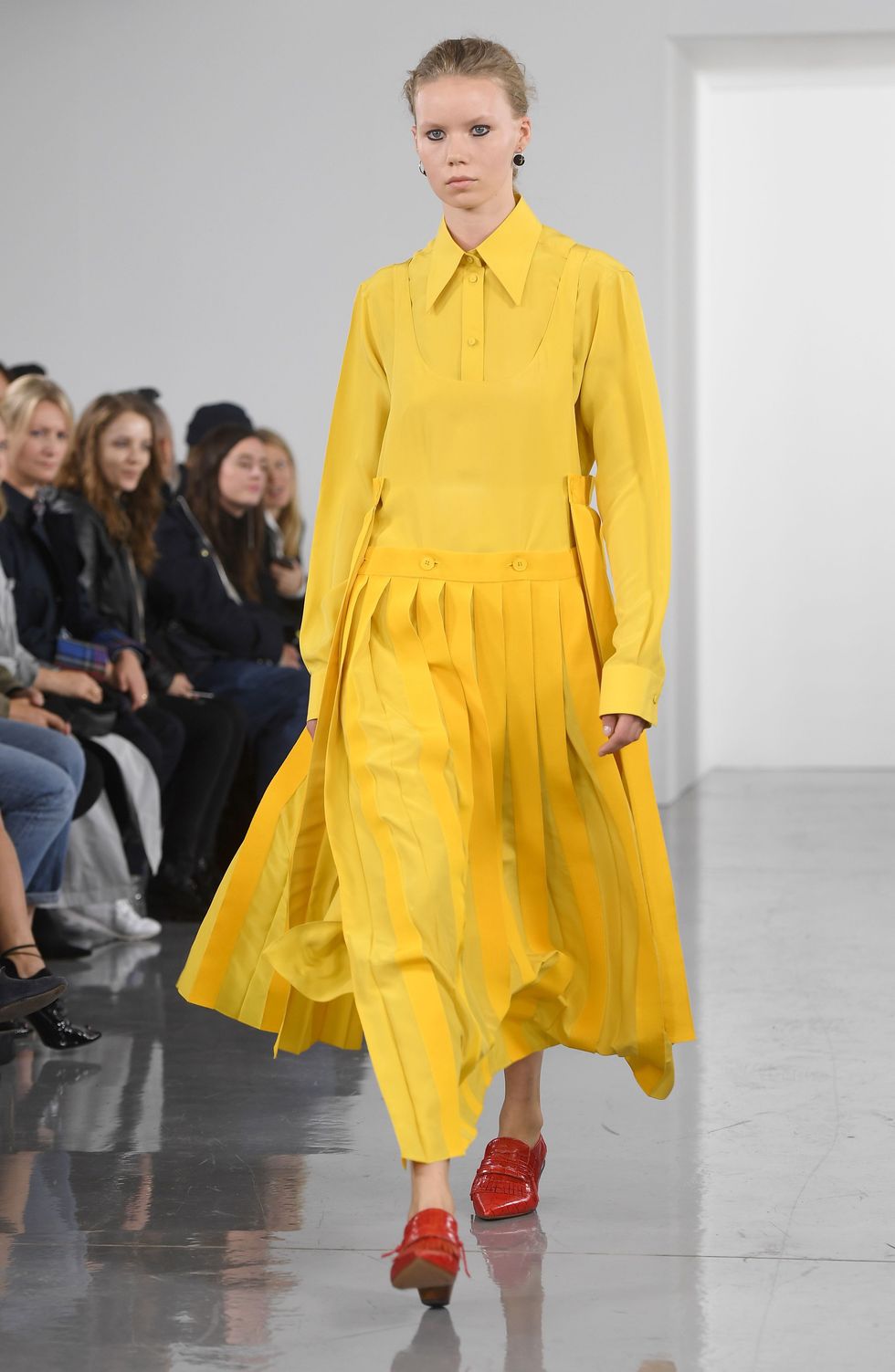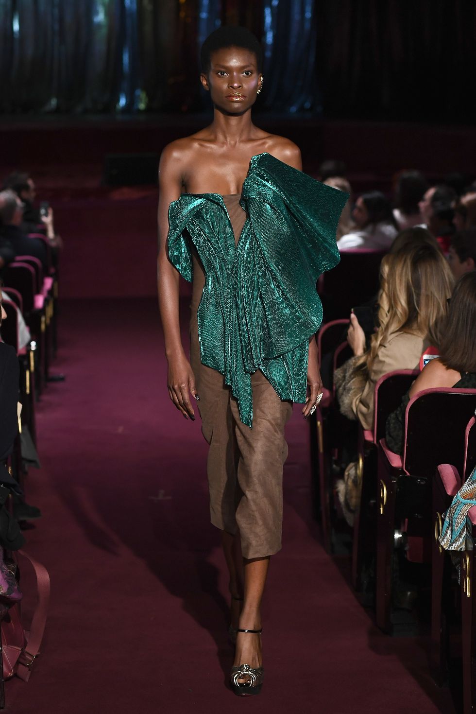 We couldn't resist picking an oversized tulle look from Molly Goddard because it's her signature look we love but she also experimented with other fabrics keeping the silhouette eccentrically oversized.