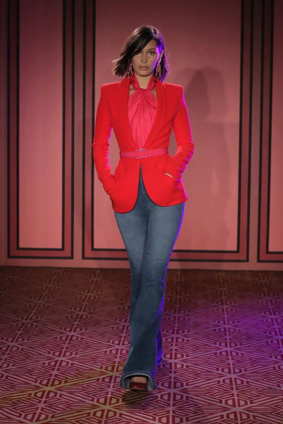 Bella Hadid channeling casual elegance in Brandon Maxwell's show.