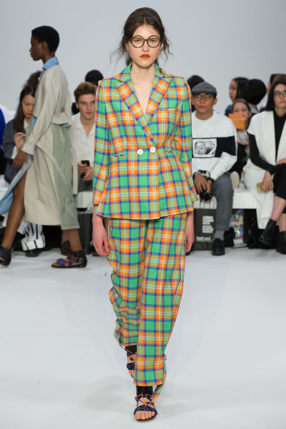 I love this colourful suit and the proportion of the big trench from Theo VII Studio. It's borderline between menswear and womenswear and I love this.