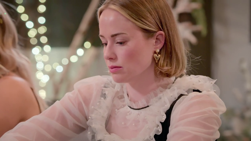 Like her nemesis, Whitney goes through a noticeable aesthetic transformation after it's revealed her husband was fooling around on Tinder. (And she was dragged out of Utah for dancing in the hospital room with her sick newborn.) She quickly hops out the fried hair and party dresses and cool girl clothes, jumping right into more traditional peasant dresses and cap sleeve, empire waist monstrosities. They likewise go hand in hand with a brewing conversation over the season she would like to farmstead with her burgeoning family — convenient, as I’m sure there’s no gay guys (or women!) on Tinder for her husband to flirt with deep in the Utah countryside. Well, that’s what they call the Park City suburbs, so maybe there’s hope for him yet.
