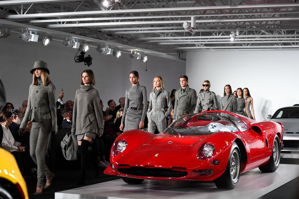 Leave it to Ralph Lauren to chauffeur the entire fashion flack in the middle of shows to his Bedford, NY garage for a fashion show and black tie, candle lit dinner. Amidst Porsche's, Bugattis, and Jaguars, Bella Hadid and Kendall Jenner alighted in primary racing colored gowns and oil-slicked suiting. The clothes may not have re-invented the fashion wheel, but who needs new one's when your's as fabulous as Ralph's?