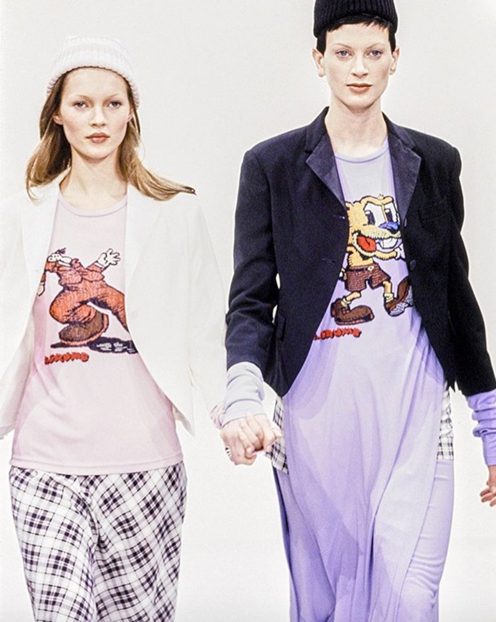 This collection was the antithesis to the glamourous power dressing that had been seen during the previous years, and marked a significant change in fashion trends and styles to come. Grunge embraced the new up and coming generation of cool kids as well as the music scene dominated by Kurt Cobain in the 90s and Marc Jacobs didn't shy away, presenting a collection of floral silk granny dresses, teamed with knitted skull caps and Doc Martens. Fresh faced, eyebrow-shaved supermodels dropped their signature power walks and casually walked the runway in a collection that will certainly be remembered as a major turning point in fashion history.