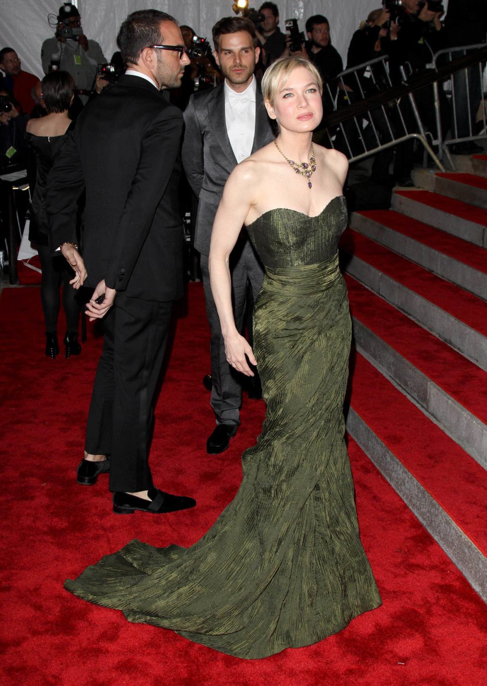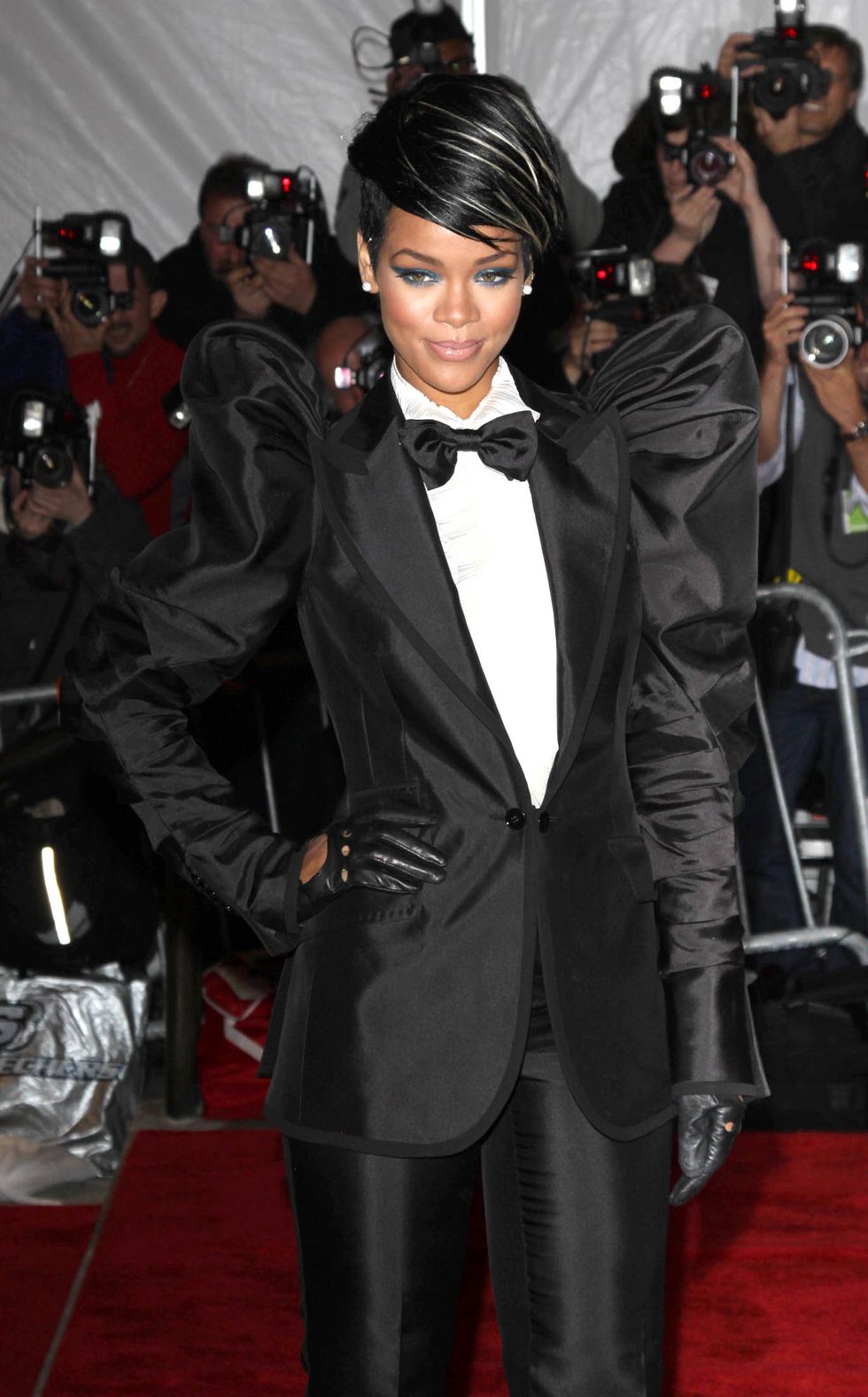 Elsewhere at the 2009 Met Gala we saw Rihanna in Dolce & Gabbana, with that emo speak-to-the-manager haircut she rocked back then. It was her first public appearance since Chris Brown assaulted her, and she topped many Best Dressed lists. Also in attendance: multiple Trumps, Kate Moss in silver lame Marc Jacobs, Amber Rose holding hands with Kanye West, Anne Hathaway with a bouffant, and Katy Perry in one of her most normcore looks ever.