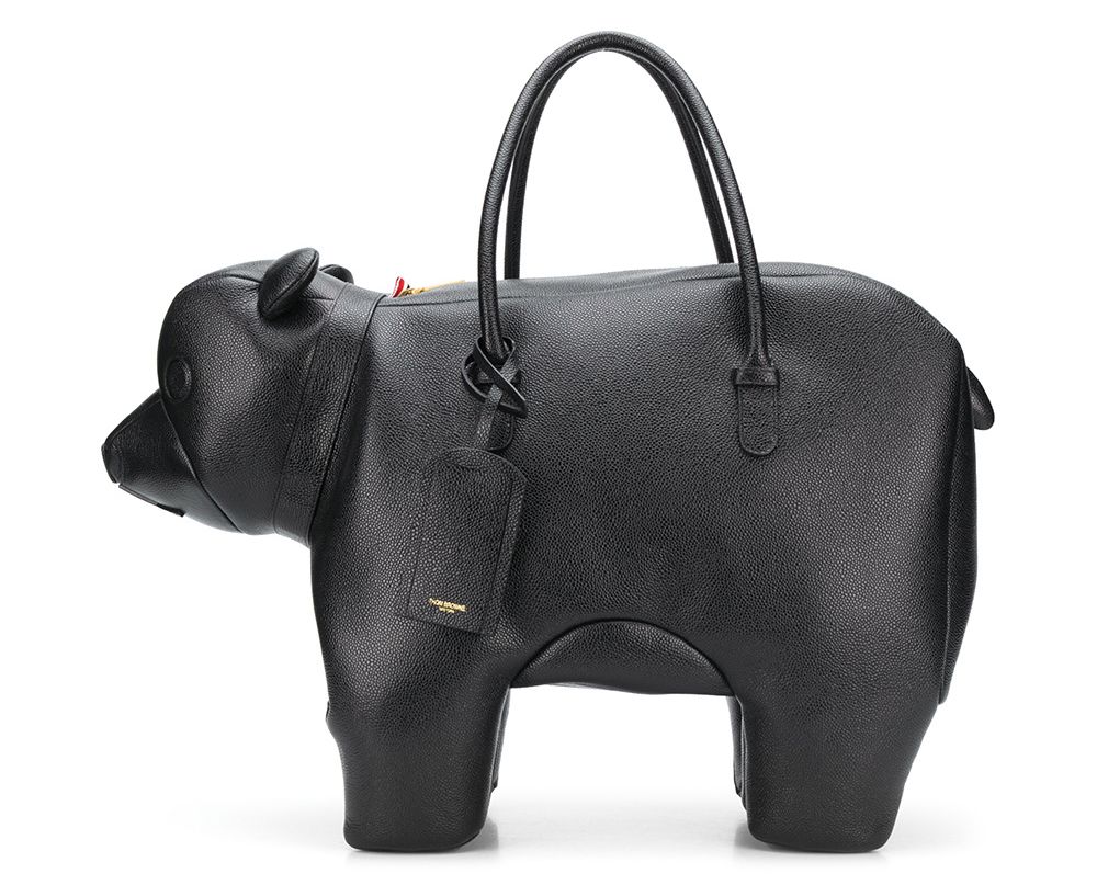 Much like Browne's collections, the bags are crafted like works of art. As they take the forms of sheep, rabbits, bears and more, their complementary animals were studied for characteristics reproduced in each. Details like embossed cheetah spots, folded hippo and pig ears, and arched rooster claws are all rendered in black pebbled calf leather for the bags (individually taking at least three days to complete), which range from $2,700 to $4,890.