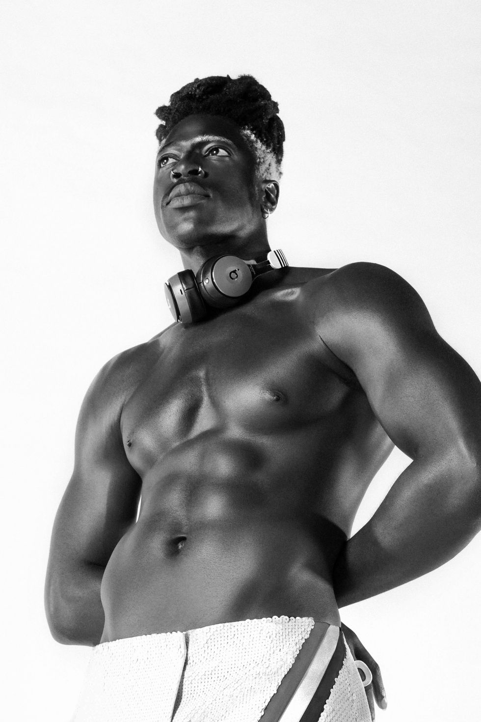 In the film, which Sumney directed, he sings a rendition of the Olympic Hymn while standing atop a podium resembling a classical statue and monument. "The viewer is forced to focus on the lyrics, movement and presence of Moses in his singular garb, as well as the musical arrangement created by Moses for this film," the brand said in a statement.