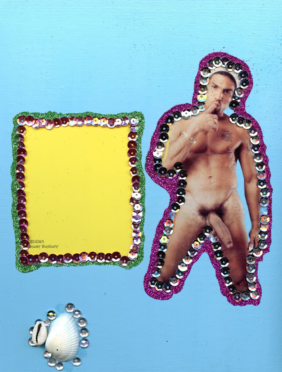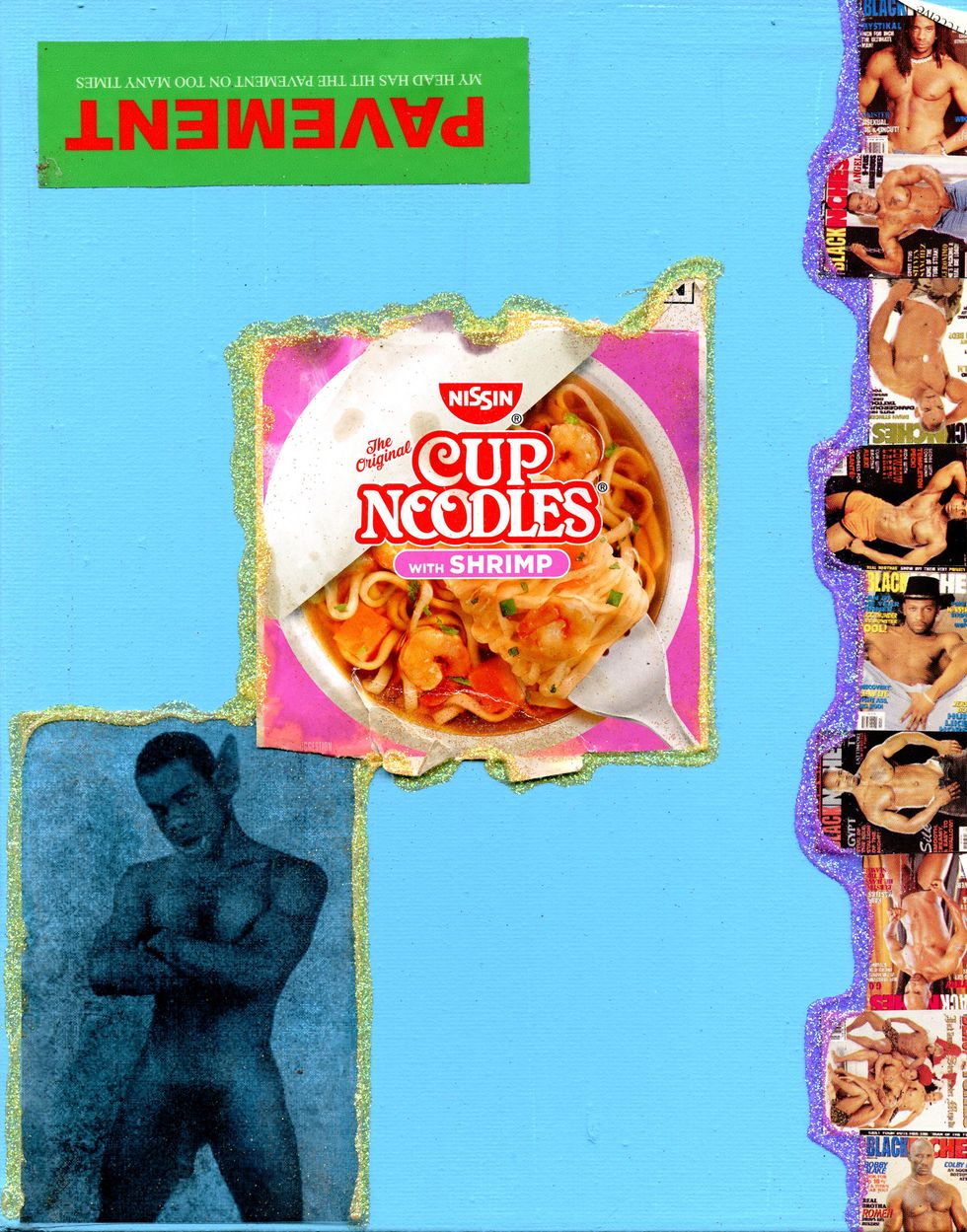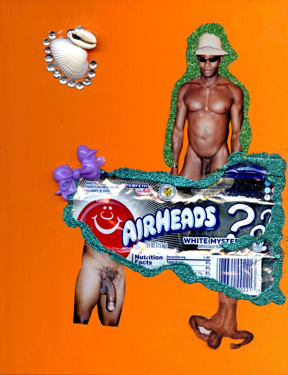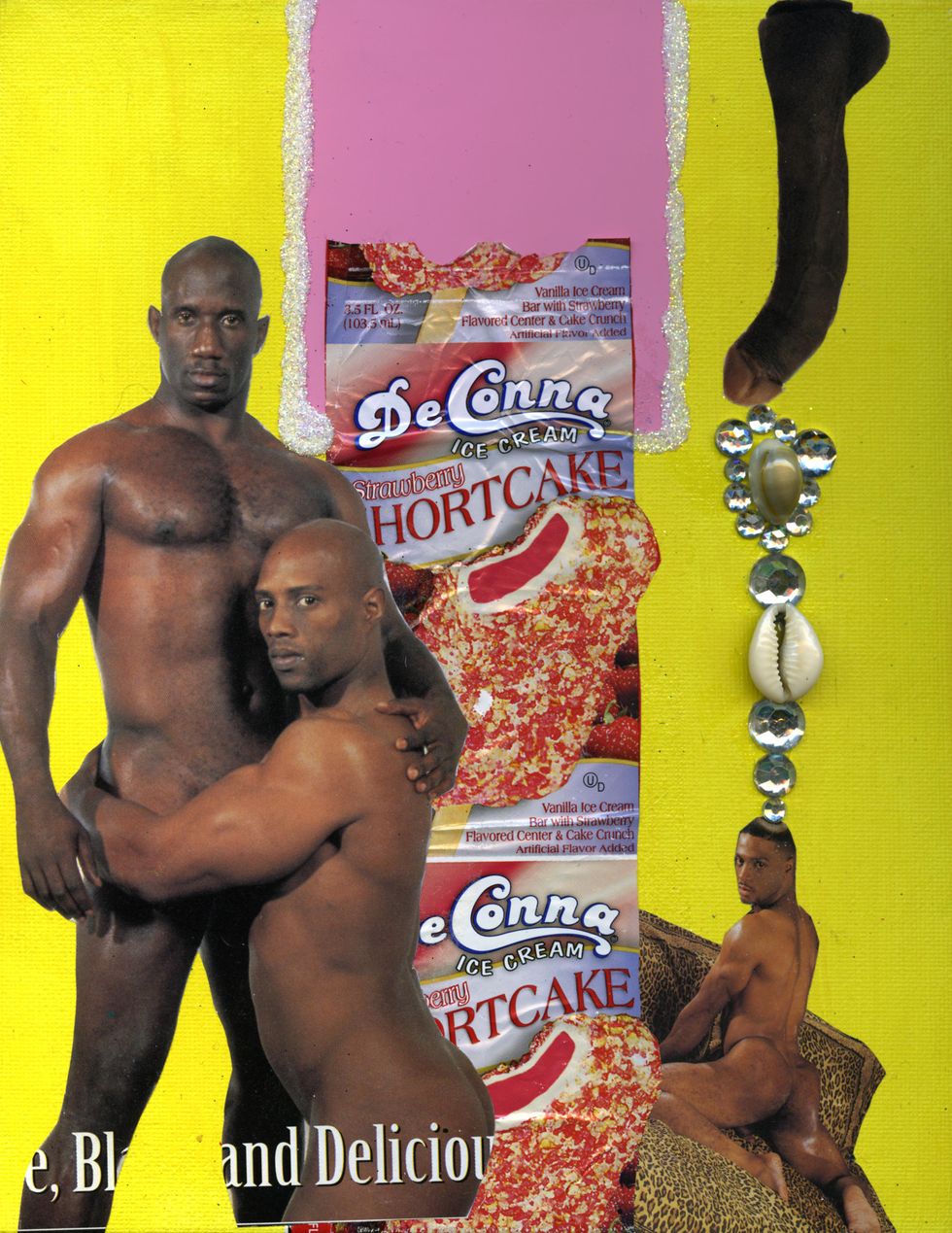 As an ode to himself and "other Black male bodies that have been discarded and coerced by the evil ways of society," the Hood By Air affiliate decided to embellish Black Inches' x-rated shots using seashells, gems, candy wrappers, rolling papers and ribbons — things that made him feel more represented in the existing photograph.