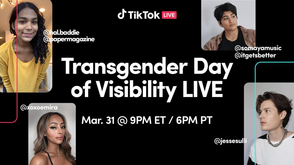 More importantly though, this means that social media has also become the perfect place to give voice and visibility to historically marginalized communities by amplifying their voices and recognizing the impact they've had on our world. So in honor of Trans Day of Visibility on March 31, the good folks over at TikTok are hosting a series called #TransVisibility Live in an effort to spotlight the trans and nonbinary creators who make the platform what it — and it's a virtual event definitely that you definitely don't want to miss.
