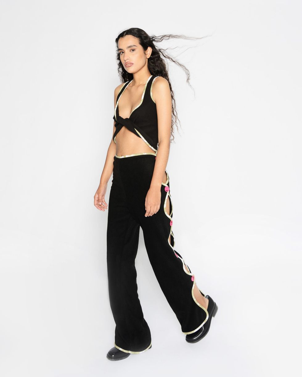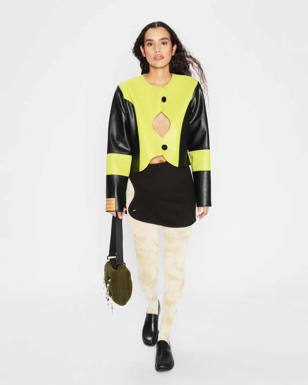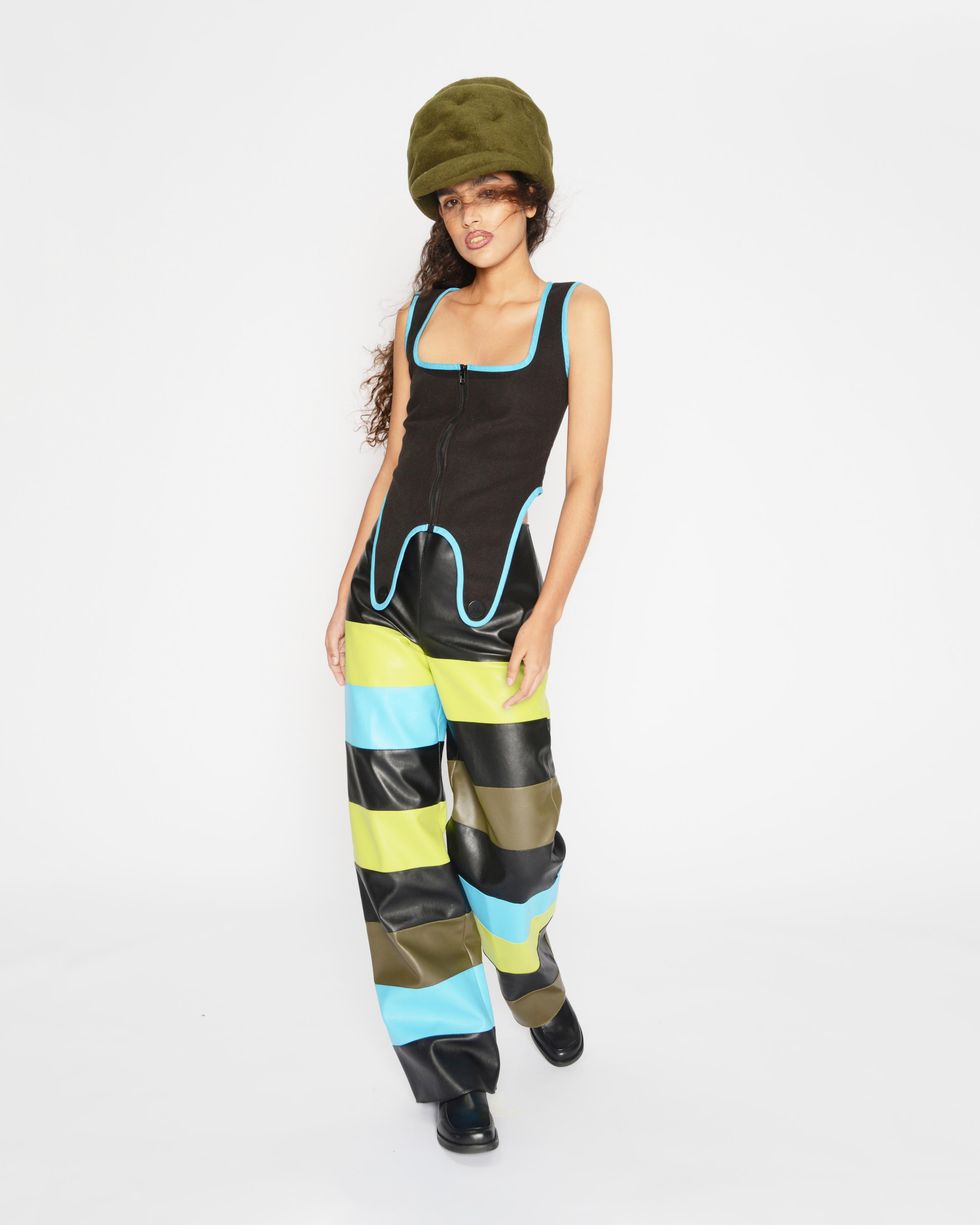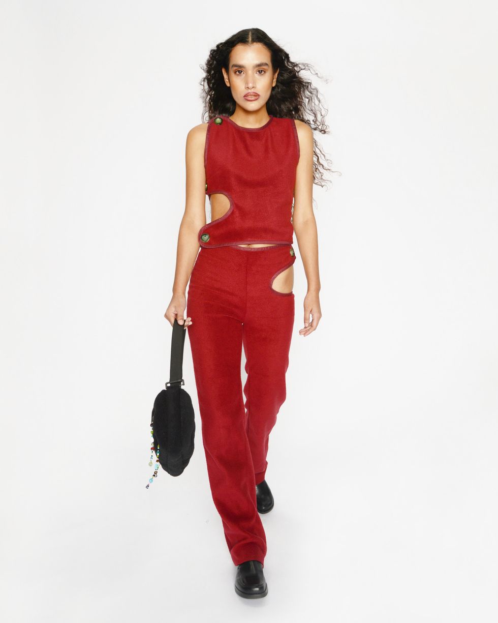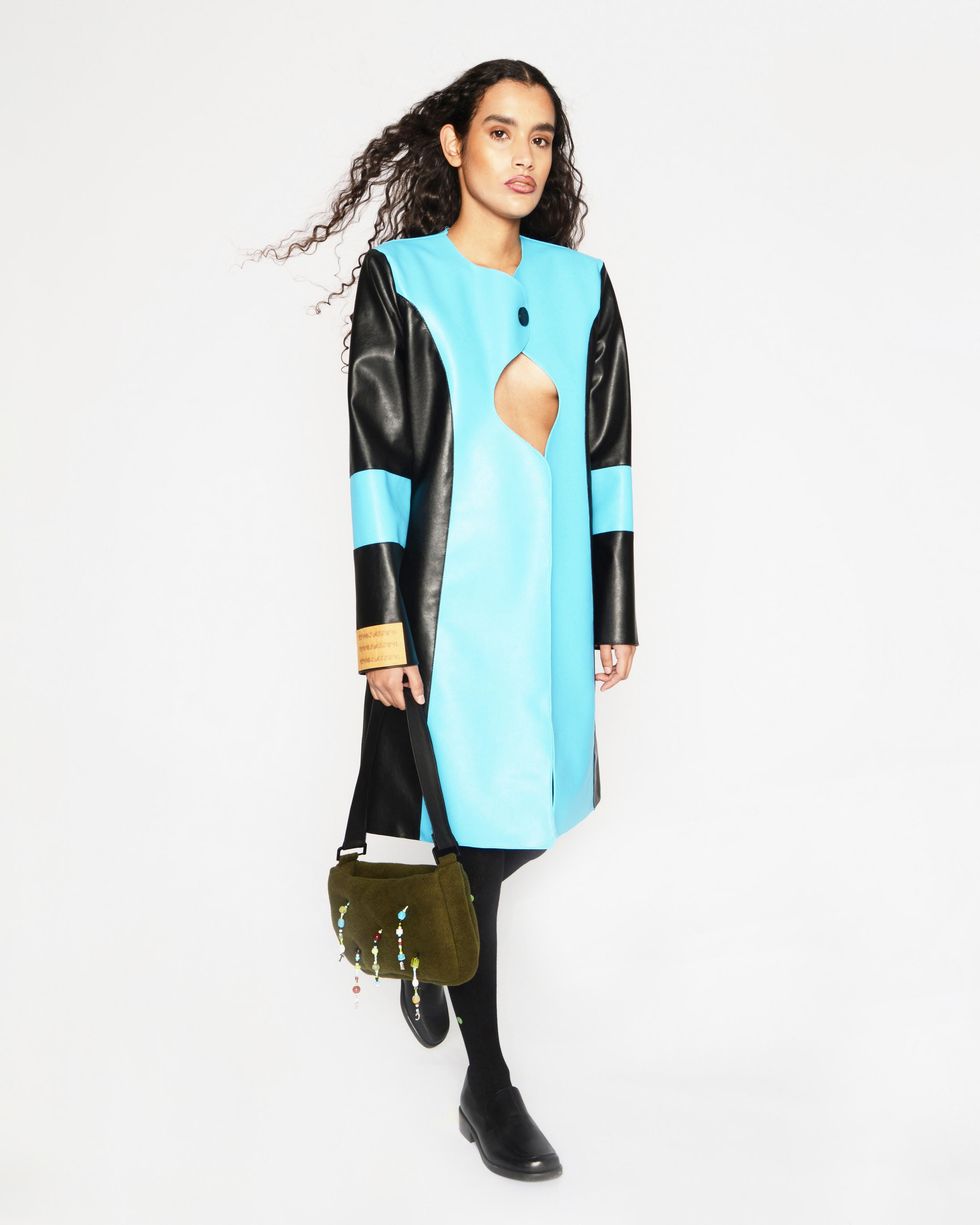 For this collection, Sassen wanted to collaborate with another emerging designer on the accessories, and took advantage of our online world by connecting with someone in Brooklyn while he was in Antwerp. "I saw this as the opportunity to collaborate with Marshall Columbia, who hit big with his Plush Bags in bright colors during lockdown," Sassen says of his "internet friend," who recently dressed Dua Lipa.