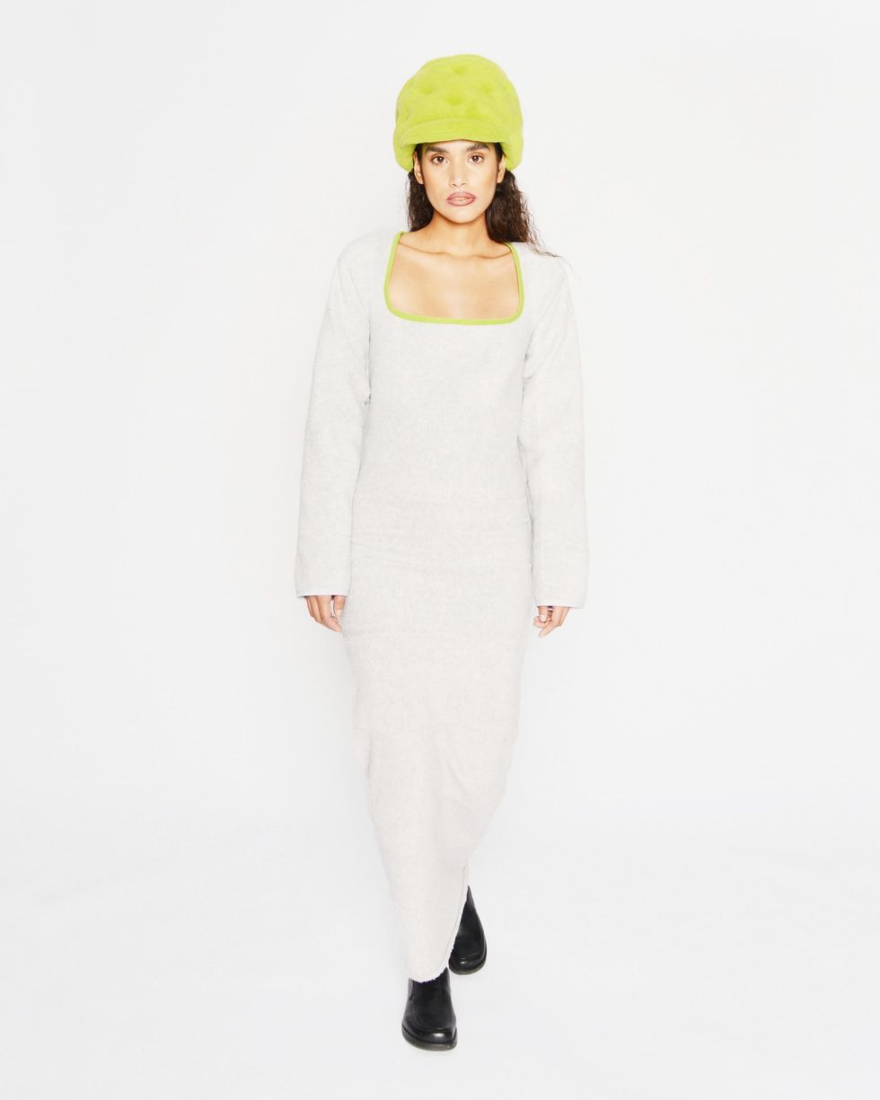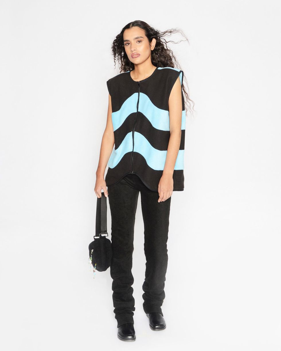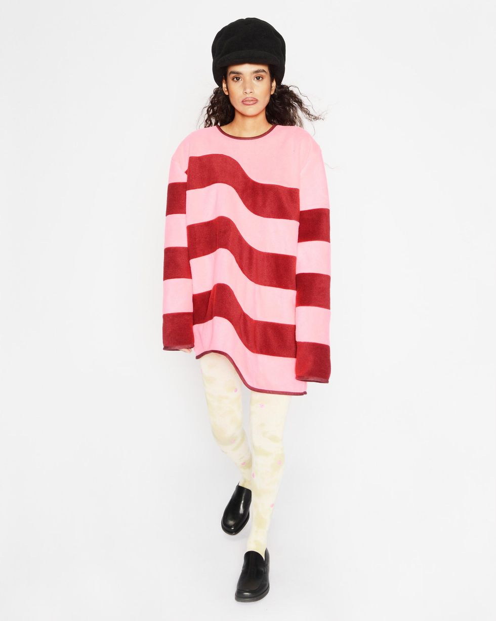 An aesthetic match, both Sassen and Columbia have explored a sense of innocence throughout their work, leaning into youthful silhouettes in "electric color combinations." Together for Fall 2021, they created a small line of hats and bags in three different shades. "There is so much emotion loaded into the materials of this collection — something we all felt this year," Sassen says. "We have to comfort ourselves in ways we know how, and for me that's fashion and fleece."