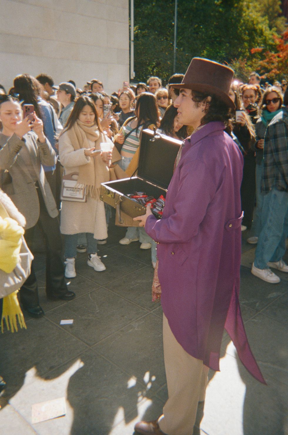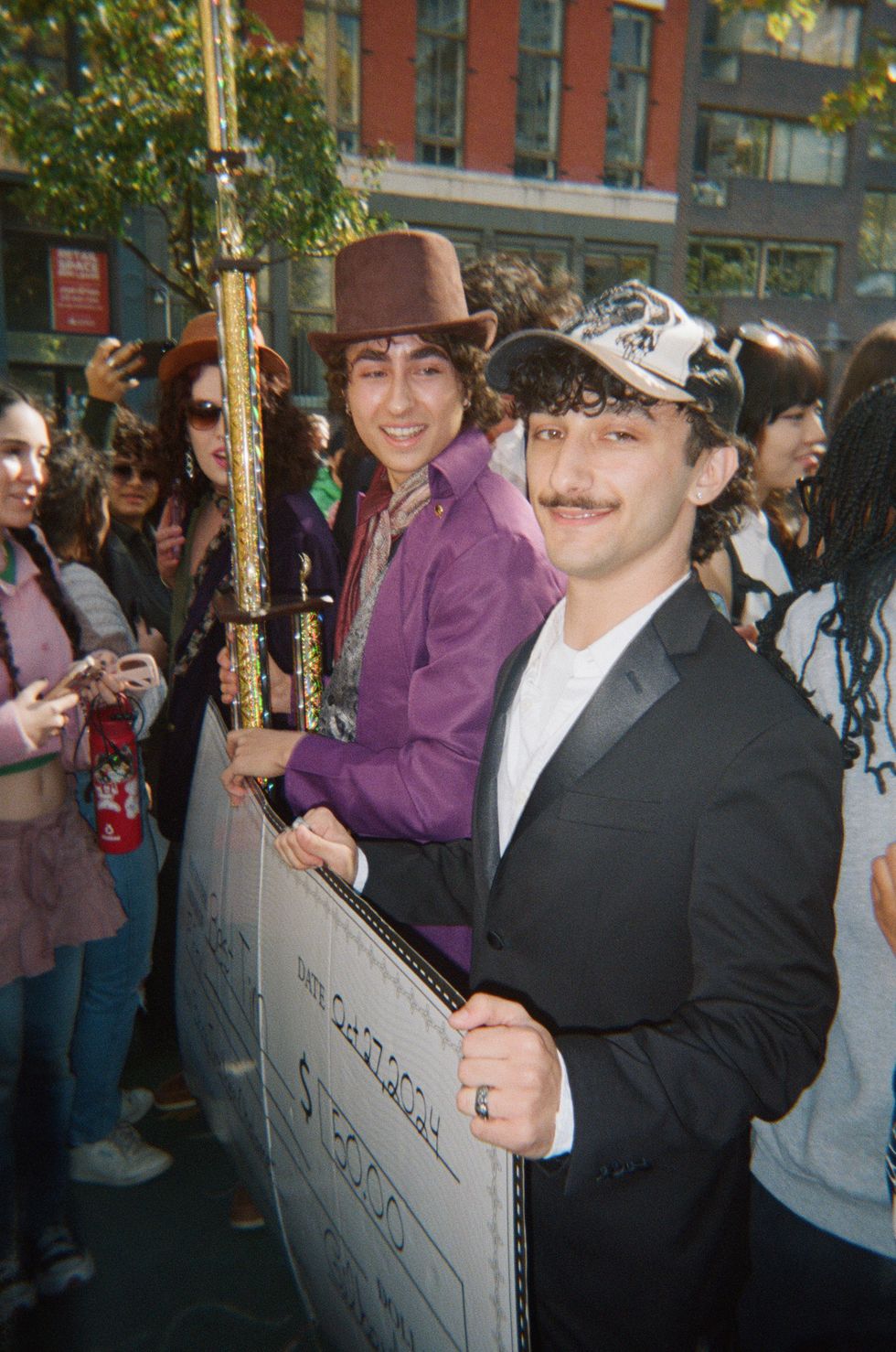 Miles Mitchell, dressed like Willy Wonka, came all the way from Staten Island. “It’s a cool event,” he said, opening his briefcase to reveal a trove of Halloween candy. “I've never seen anything like this before.” People have always told Mitchell he looks like the actor, and he even went viral in a TikTok last year for his Chalamet-inspired haircut. He told PAPER he came to have fun, meet people and perhaps find an opportunity to break into modeling.