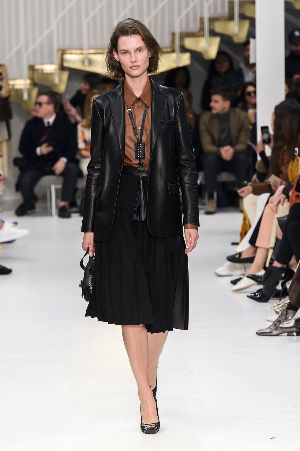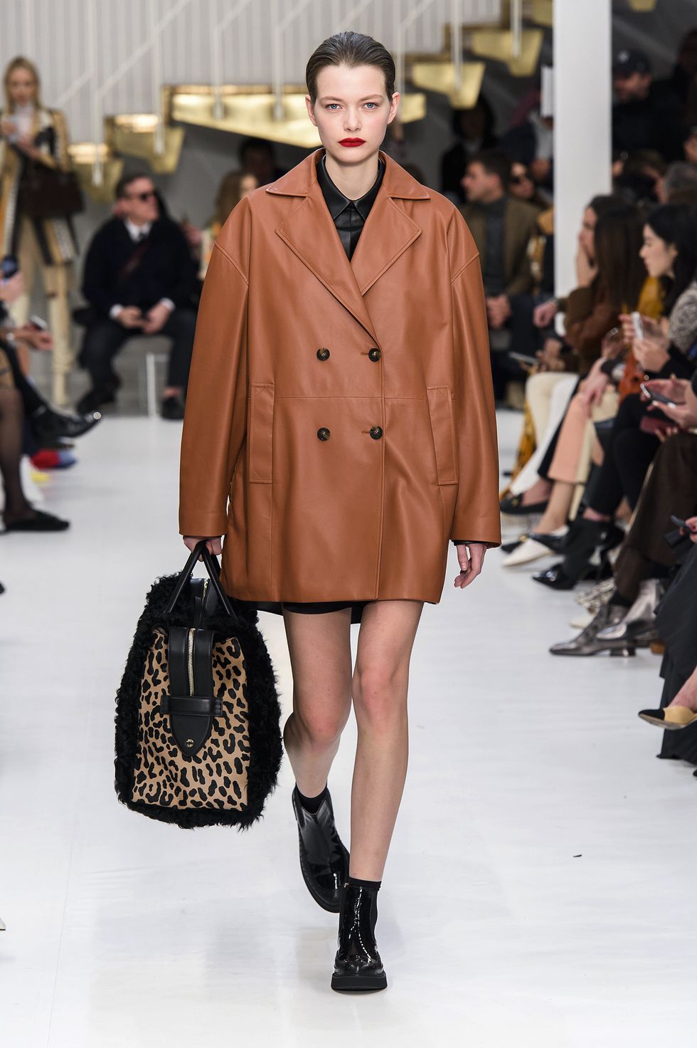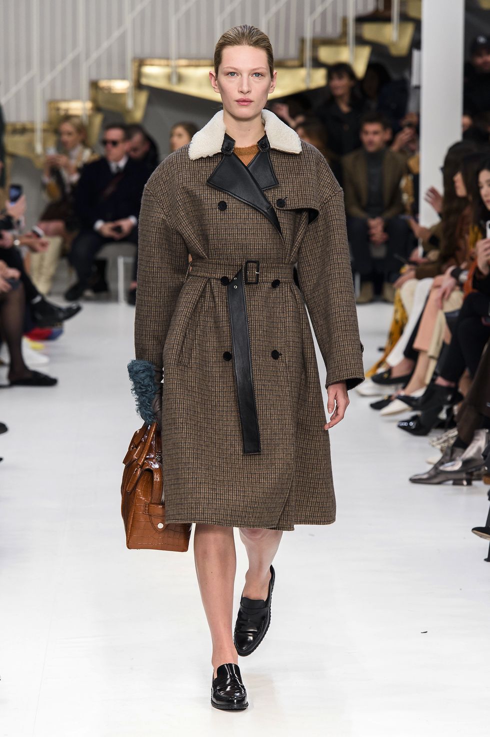 If there's one takeaway from the Tod's runway – it's that investing in bigger bags is your best bet. The label showed a collection full of totes, bucket bags and some bags that were doubled up (models carried two at once) in larger sizes. The top handle carryalls looked like they were weekend-away size.