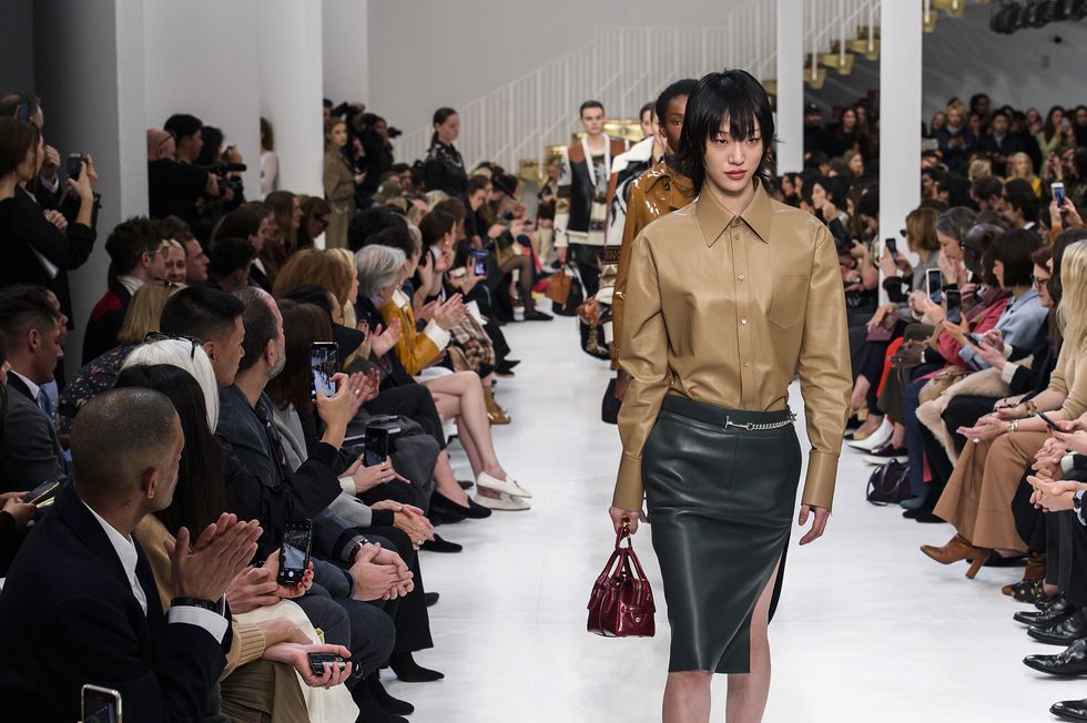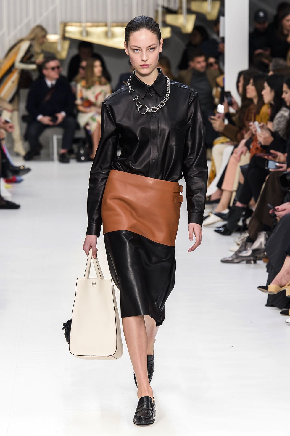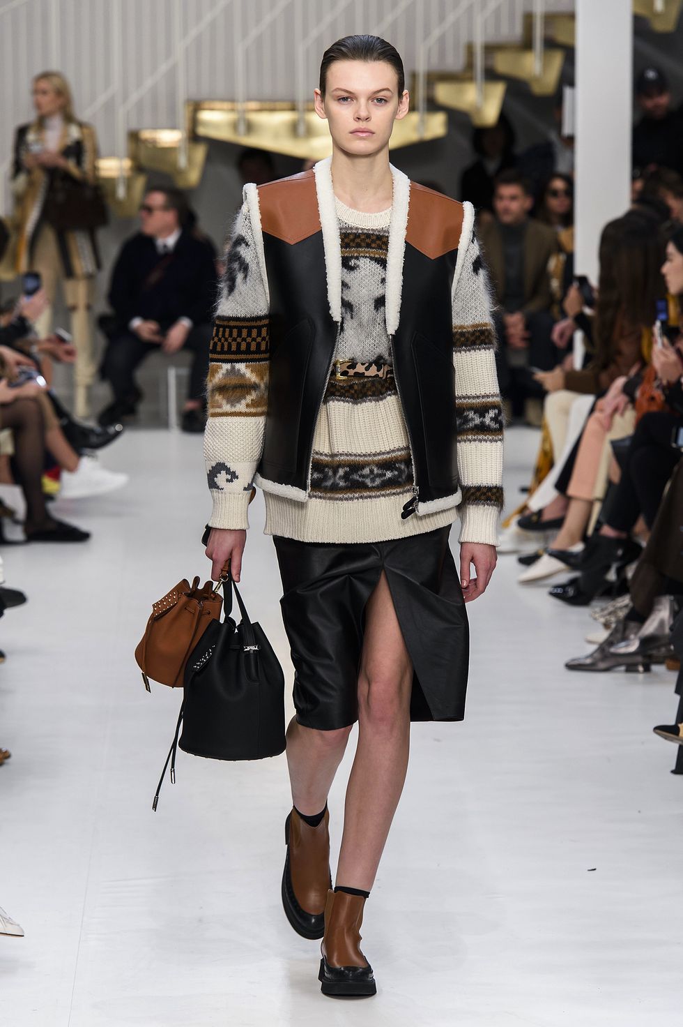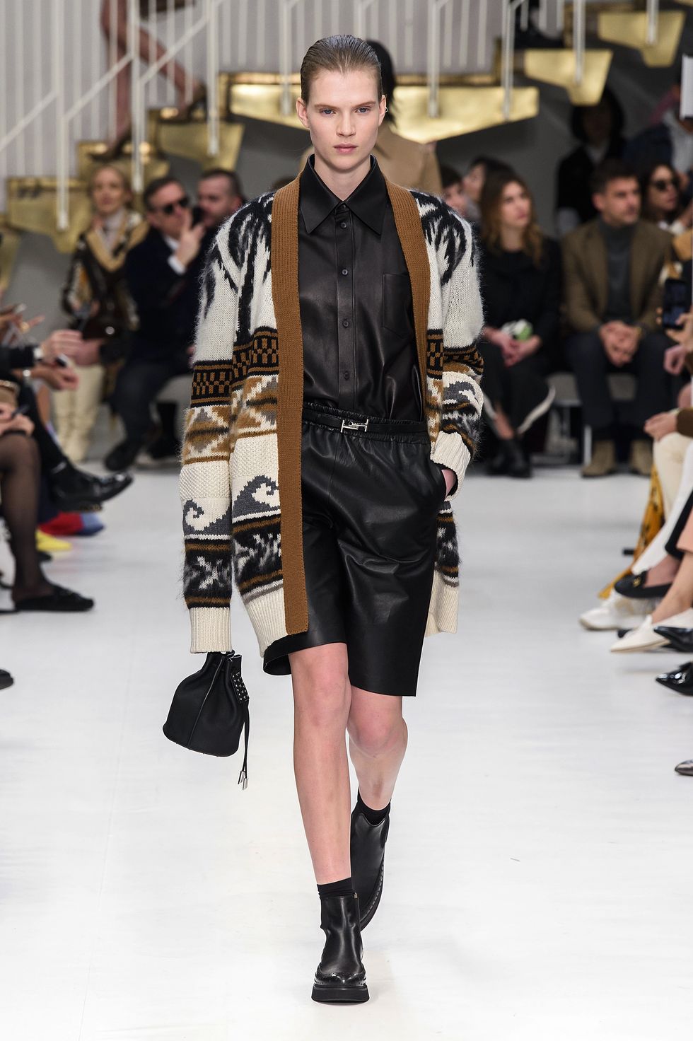 If there's one takeaway from the Tod's runway – it's that investing in bigger bags is your best bet. The label showed a collection full of totes, bucket bags and some bags that were doubled up (models carried two at once) in larger sizes. The top handle carryalls looked like they were weekend-away size.