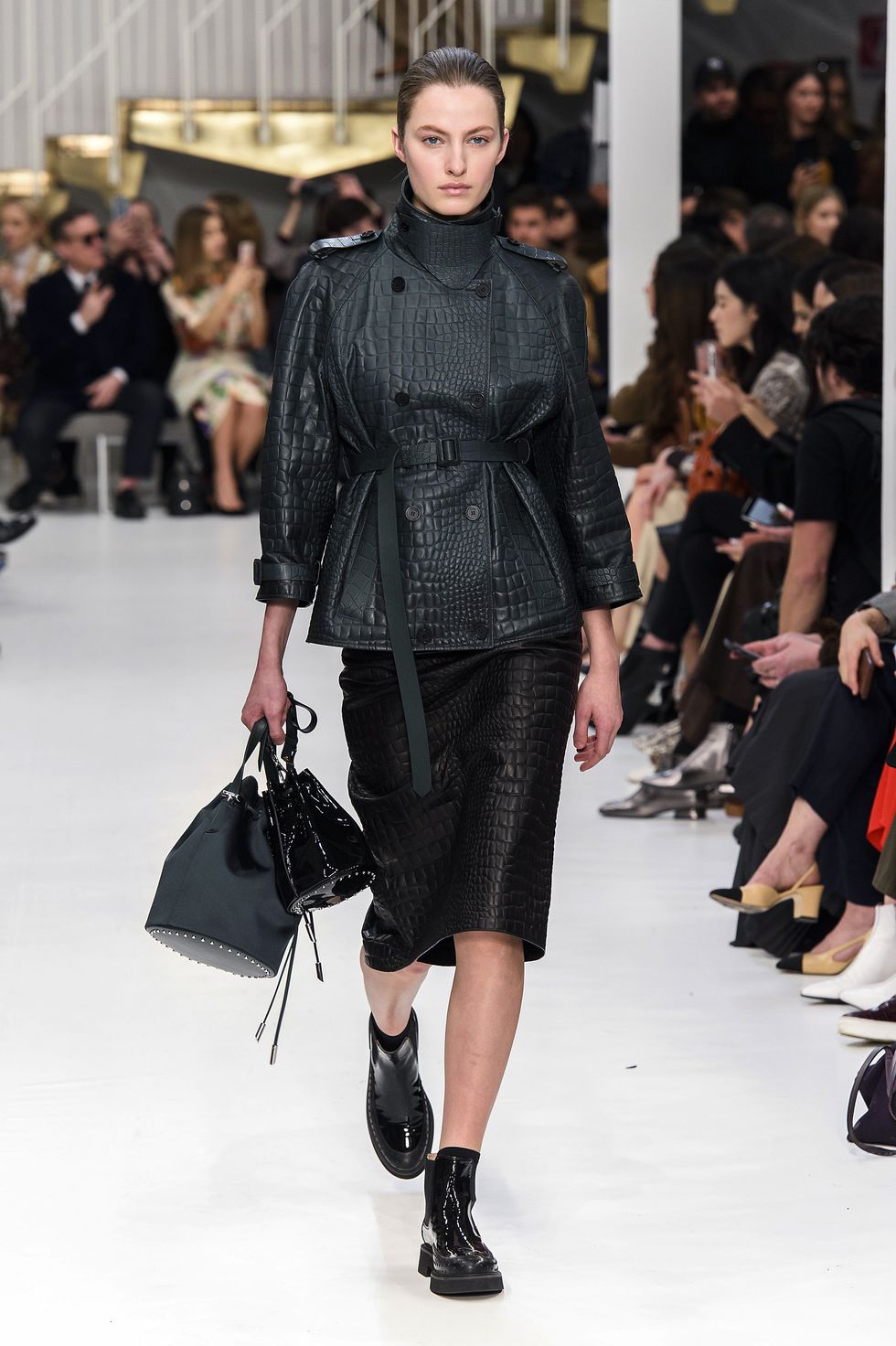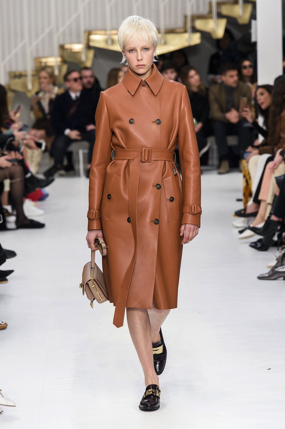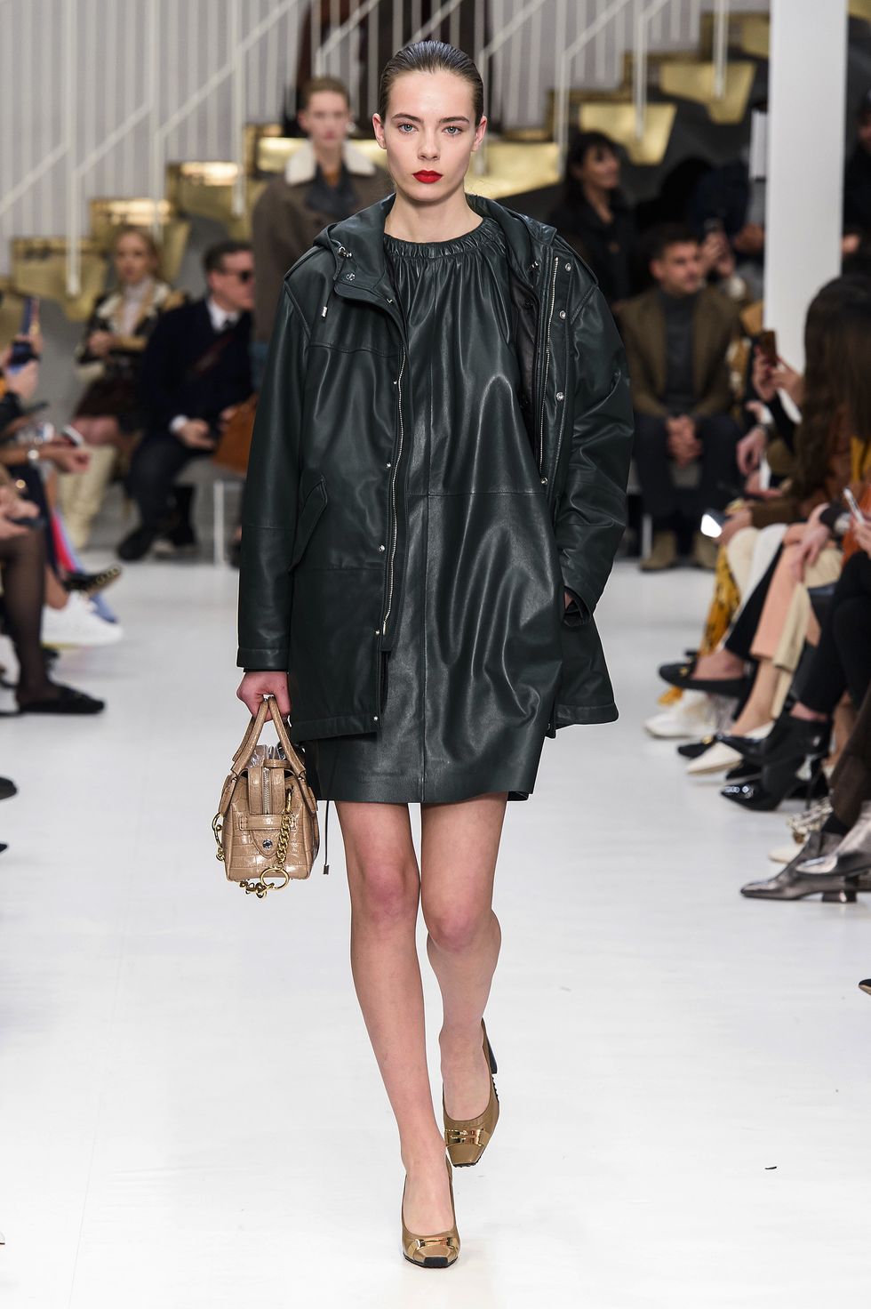 Another trend we've spotted far and wide has been emerald green. And Tod's delivered it in lush leather coats, skirts and dresses plus sporty puffers and slick leather trousers.