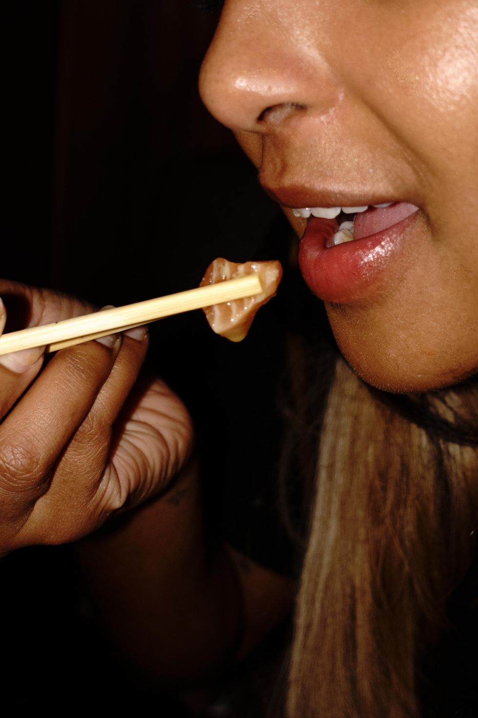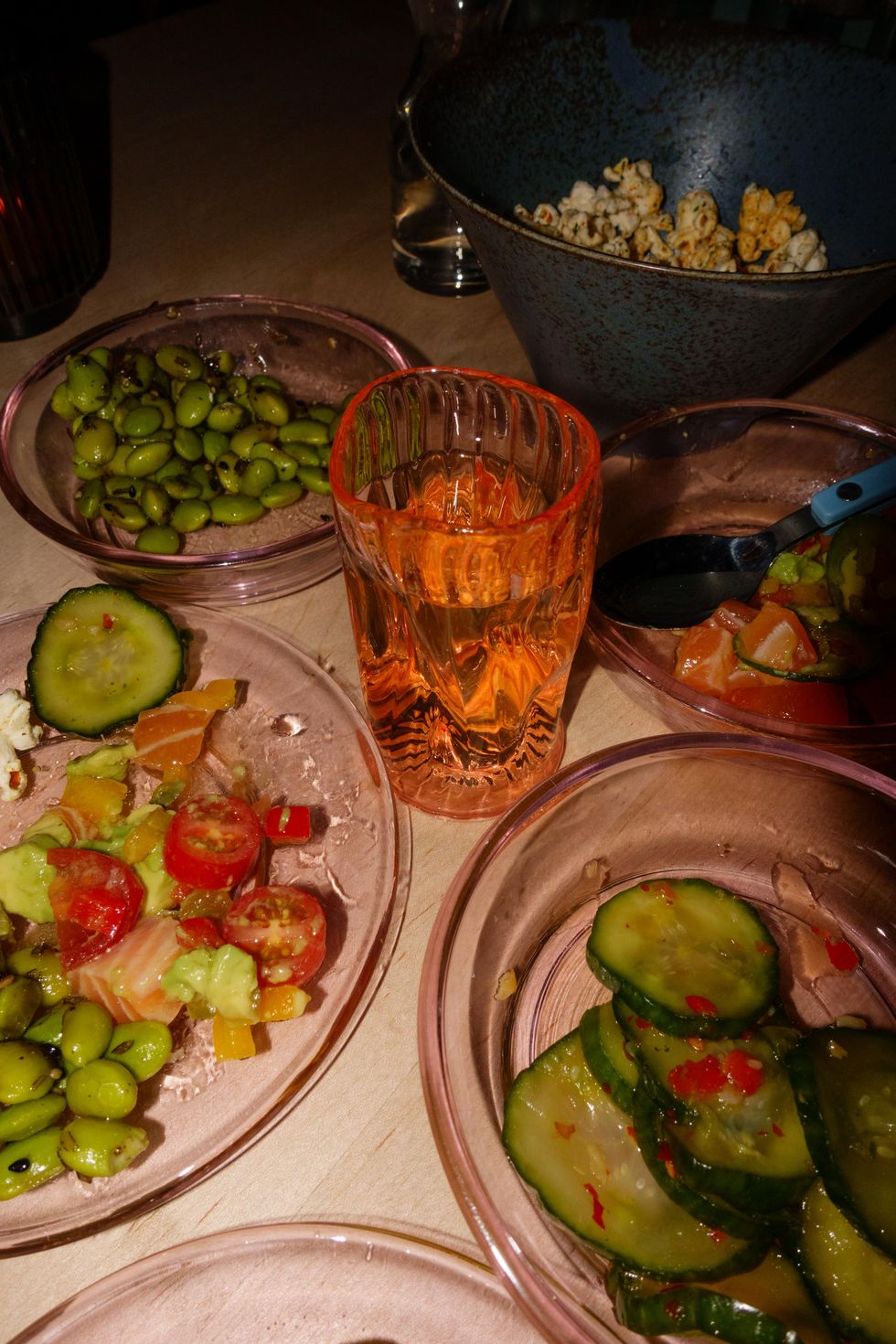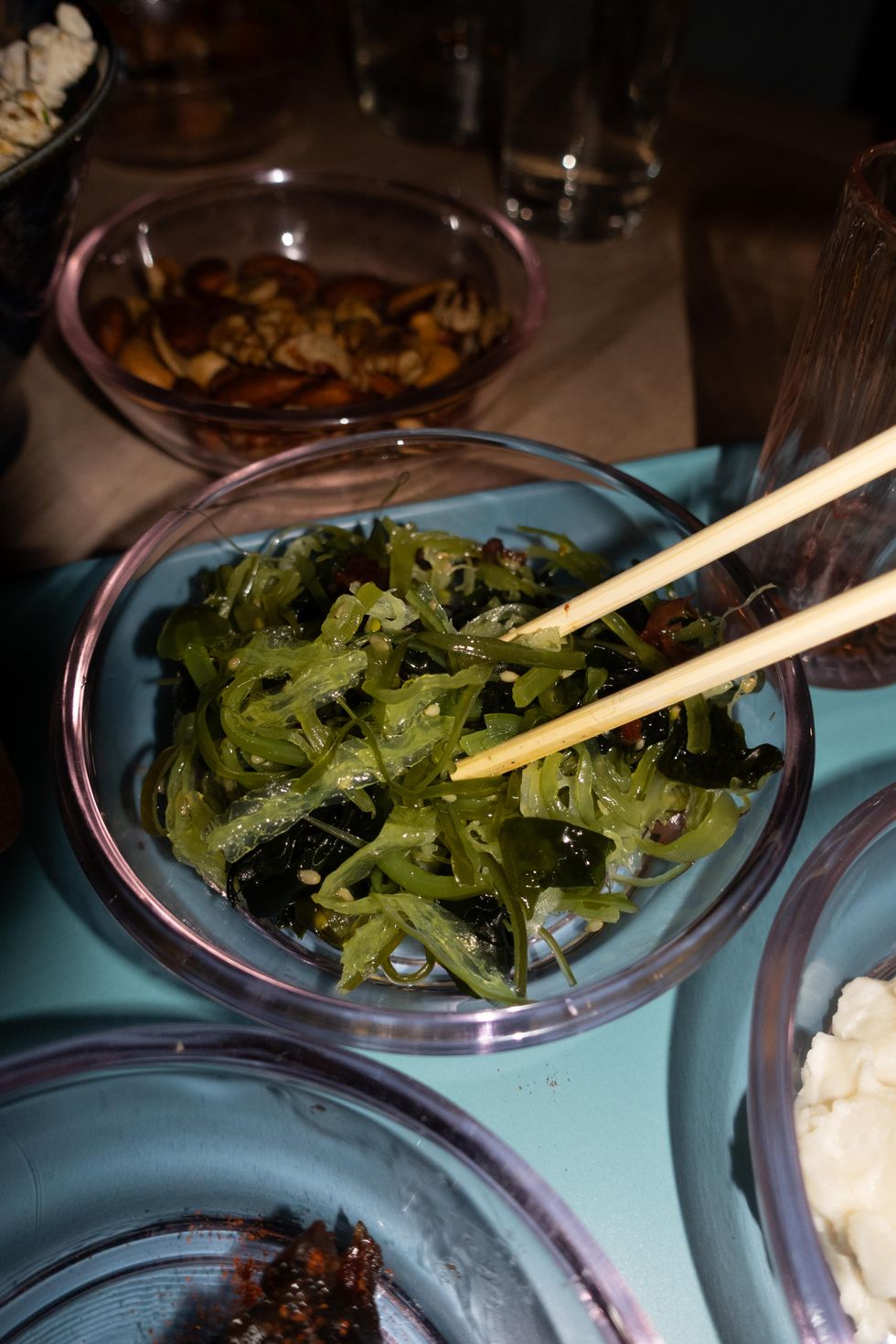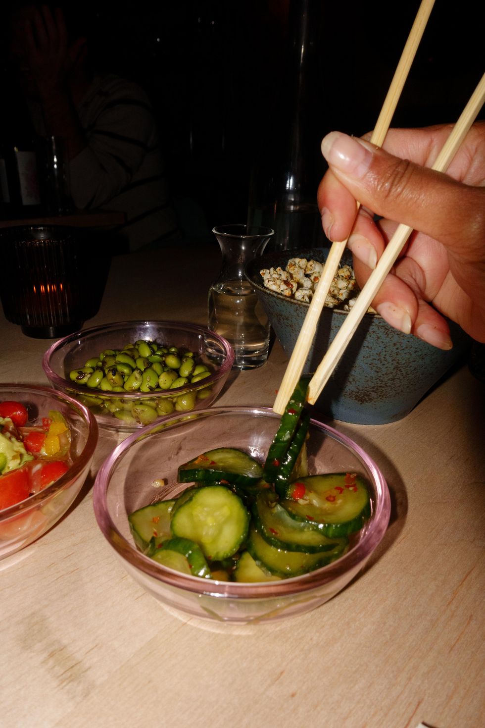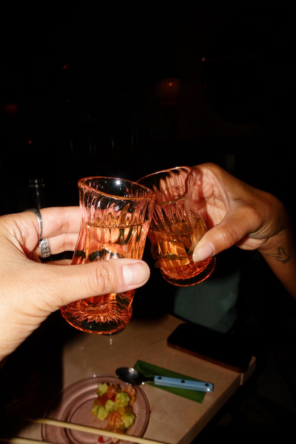 “We want people to be able to hang and have some fun snacks make a meal out of the menu or just have some drinks on their way before or after a night out,” Arce adds. “Our menu is comprised of a large selection of champagne that we had from Air’s Champagne Parlor, a robust sake list from our downstairs restaurant and a soon-to-be full liquor license cocktail menu that’s coming almost any day now.” So yes, you can expect cocktails, a list of small bites you can keep snacking on 'til you’re more than full. (I heard a rumor that someone overdid it on the Japanese potato salad, but could just be a rumor!)
