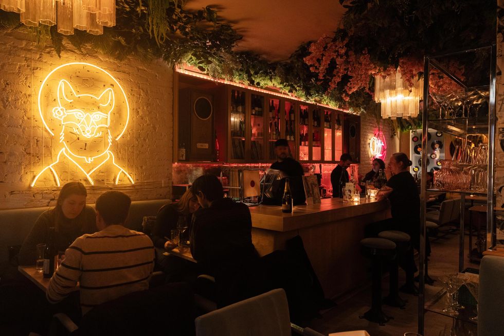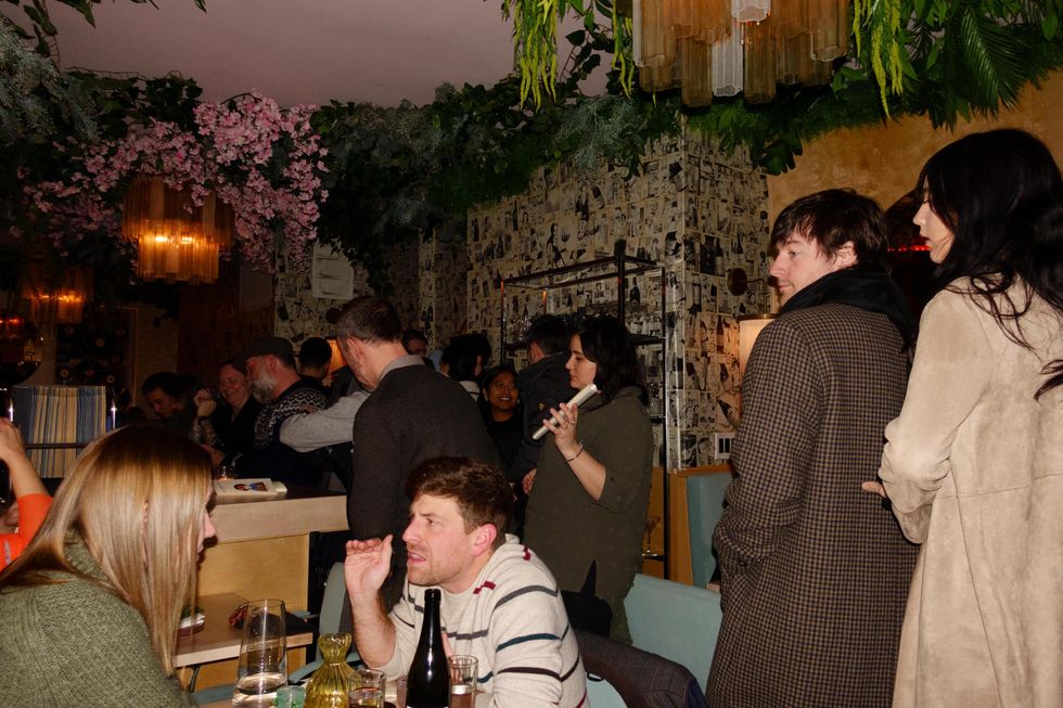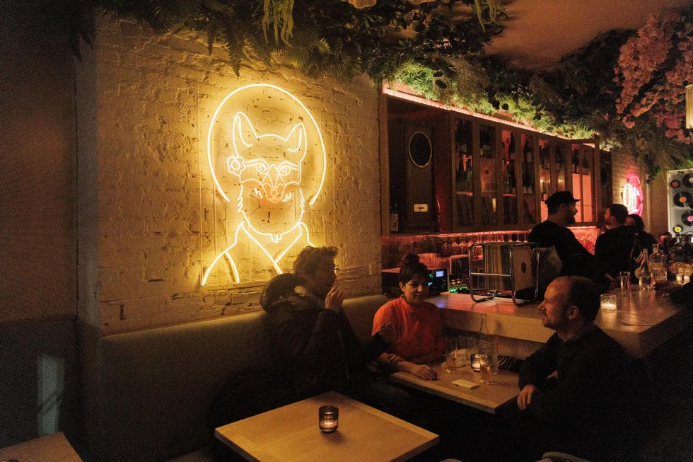 Neon, sake, vinyl and friends — sounds like the perfect evening, right? Well in that case, may we invite you to Tokyo Listening Room, a new concept from the folks that brought you Tokyo Record Bar, where you can listen to DJs, nosh on delectable delights and get a bit buzzed on sake, all from the cozy comfort of a small restaurant in Greenwich Village where bubbly date spot Air’s Champagne Parlor used to be located. On the night PAPER stopped by, we were surprised by how flavorful the menu was (somebody ate way too much seaweed salt and chili powder flavored popcorn, but that’s really not what this article is about) and the mix being spun was very Nine Inch Nails meets ‘90s hip hop.