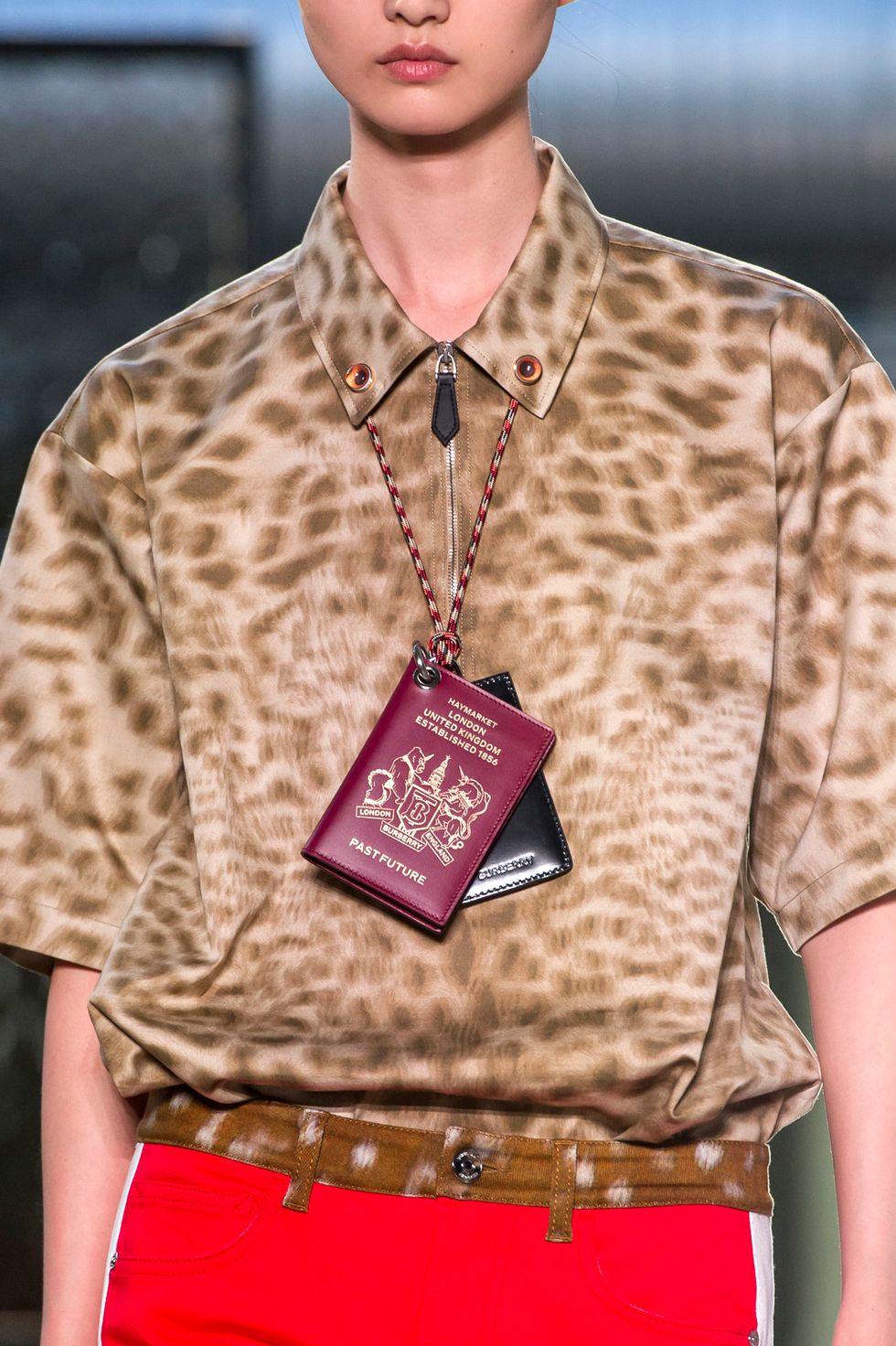In his debut collection at Burberry, titled "Kingdom," Riccardo Tisci made a subtle political statement with accessories. A maroon billfold wallet that resembles the U.K. passport was attached to a lanyard and worn as a necklace. Now that the U.K. has left the European Union, its passports have turned navy. The incisive touch made the Italian designer's stance on Brexit crystal clear.
