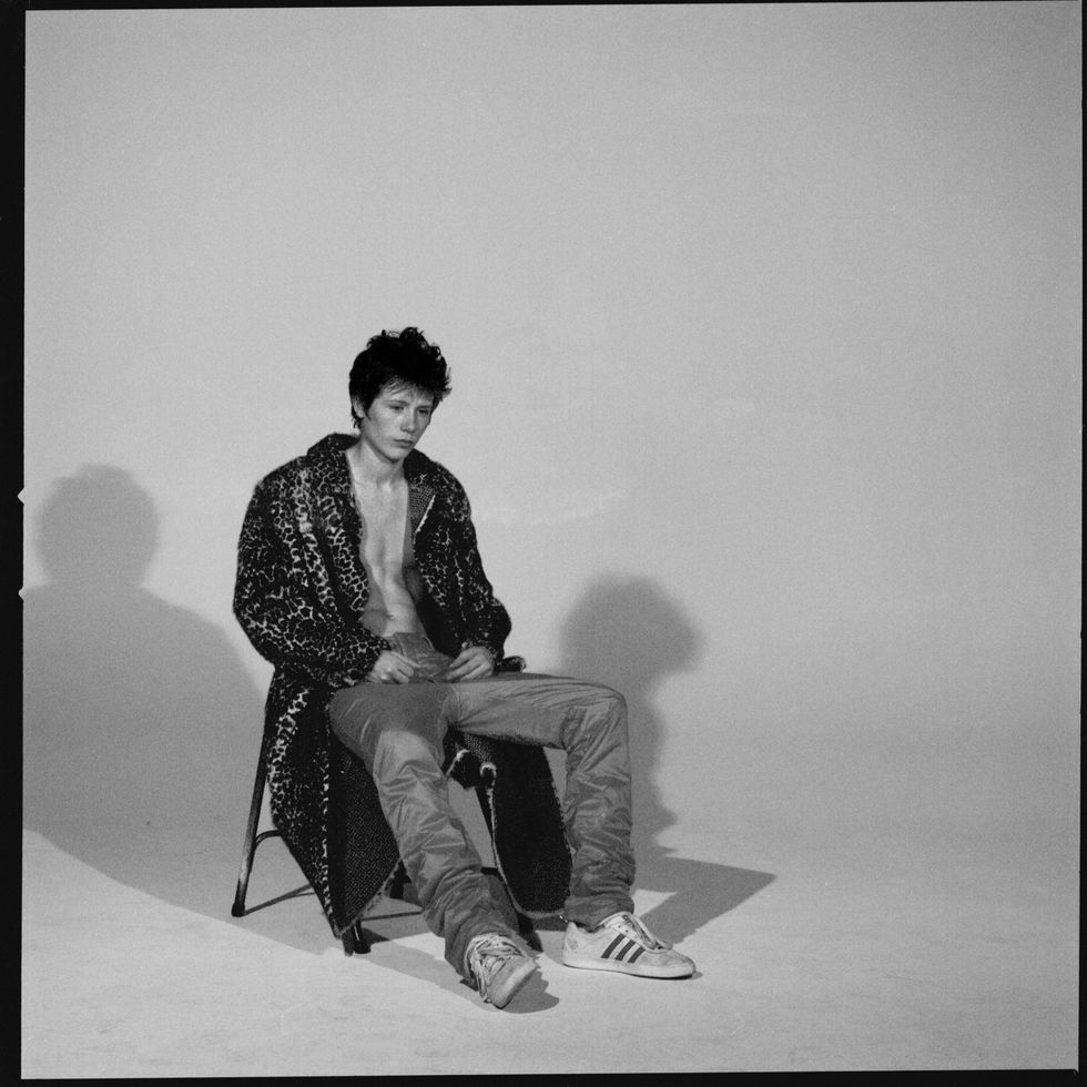 Fionn wears jacket and pants by Fendi, sneakers by Palace X Adidas.